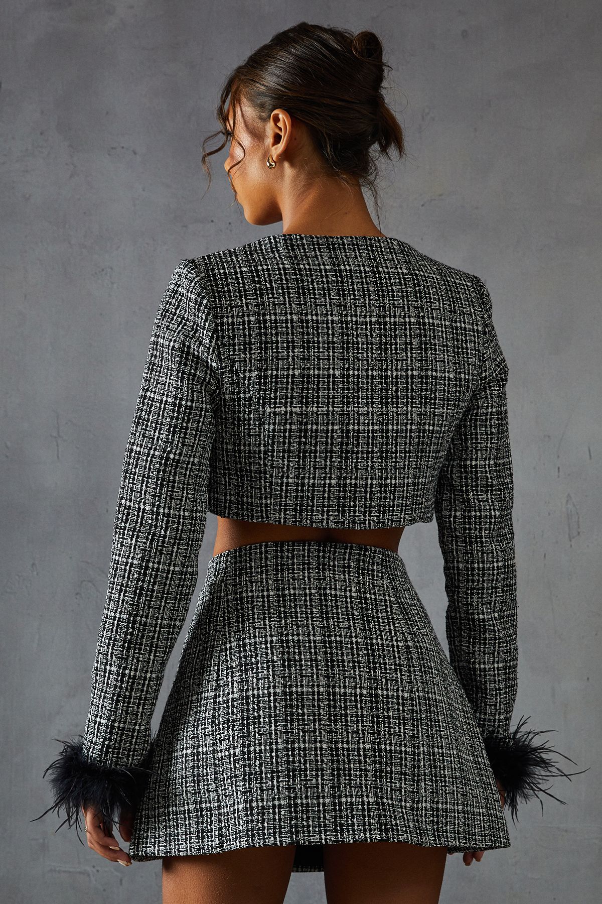 • Boucle Feather Trim Cropped Jacket