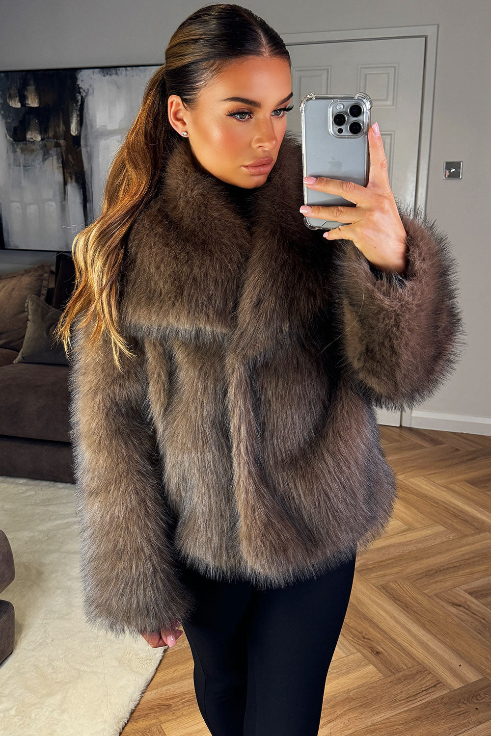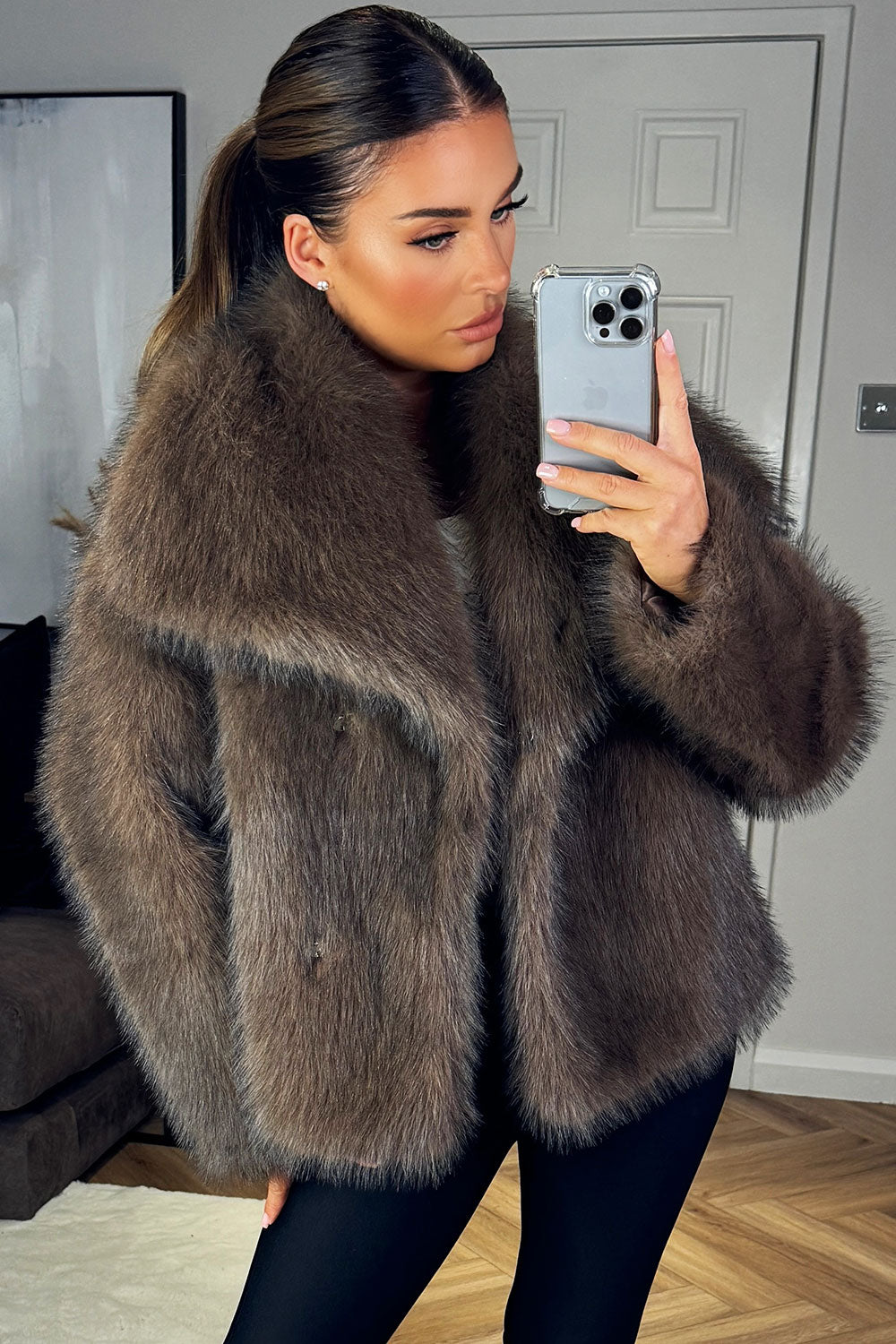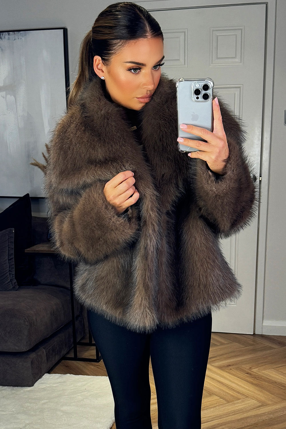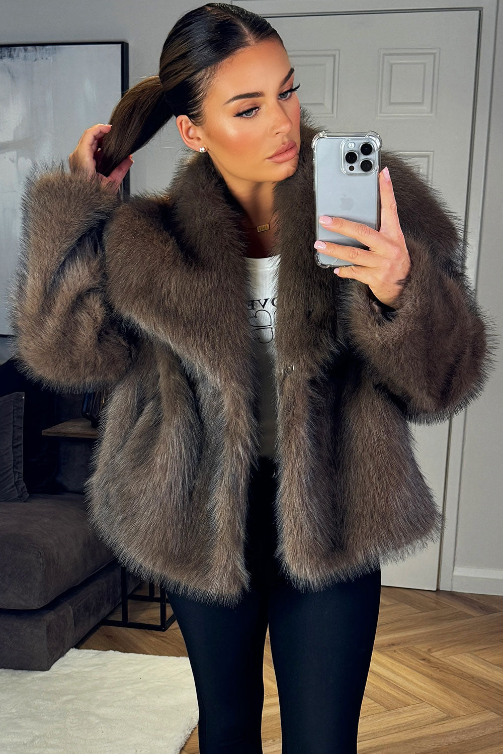 Faux fur short plush jacket. This faux fur jacket is going to take your outerwear collection to the next level. Featuring short plush faux fur jacket with lapel collar button fastening pockets really cosy soft and premium quality. This faux fur jacket is must have to complete any new season outfit. This faux fur short plush jacket is also available in other colours.