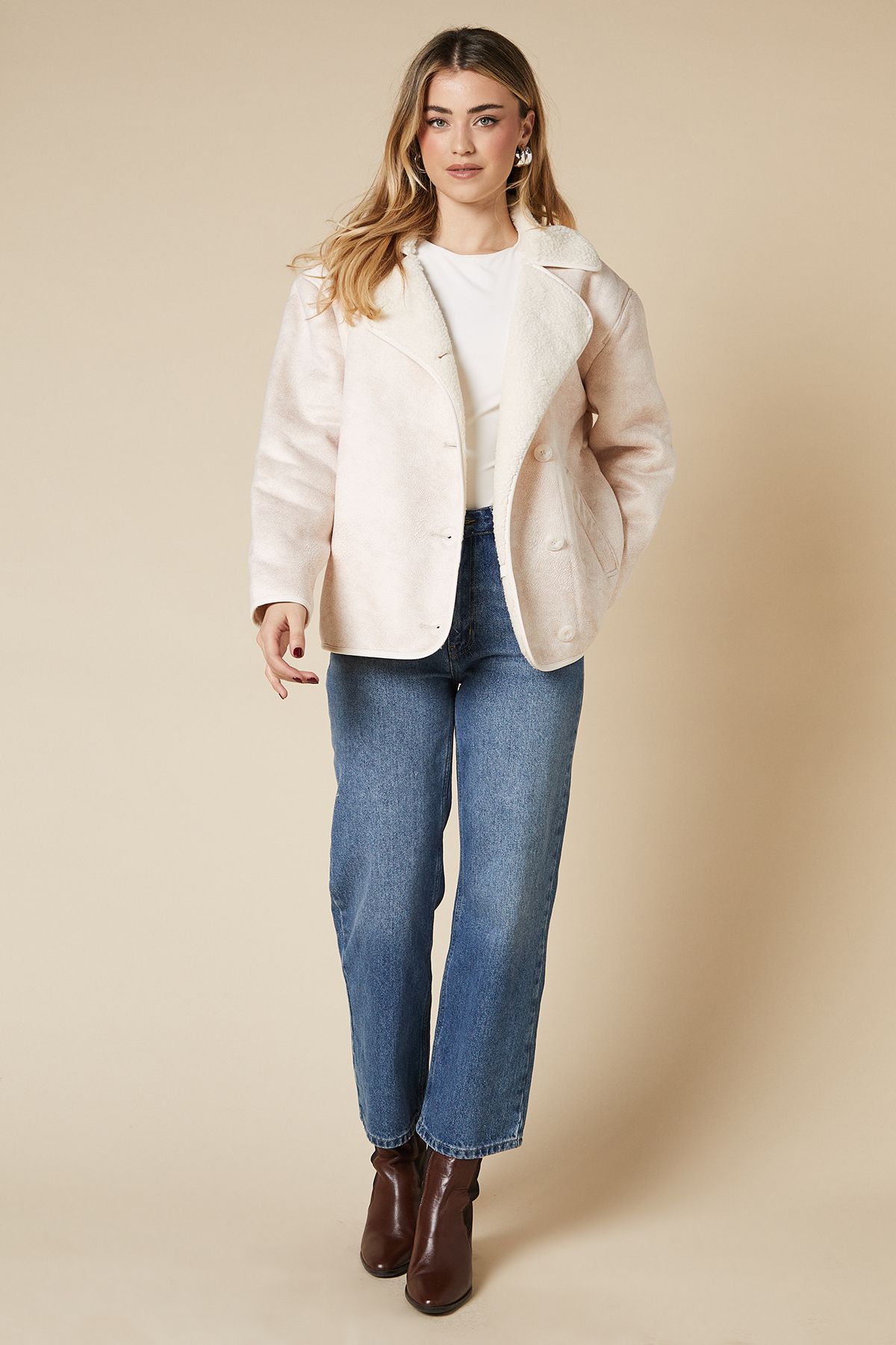 - Embrace the chilly weather with this chic button-through borg aviator jacket from Dorothy Perkins. Perfect for the fashion-forward woman who values both style and comfort, this jacket is a must-have addition to your autumn and winter wardrobe. The oversized collar adds a touch of drama, while the button-through front allows for easy wear. Style it with your favourite jeans and a crisp white tee for a casual brunch with friends, or throw it over a floral midi dress for a charming look at a baby shower. The versatile length makes it suitable for pairing with both trousers and dresses, ensuring you'll reach for this jacket time and time again. For a polished ensemble, team it with ankle boots and statement earrings, channelling effortless sophistication for your next family gathering or casual outing.
