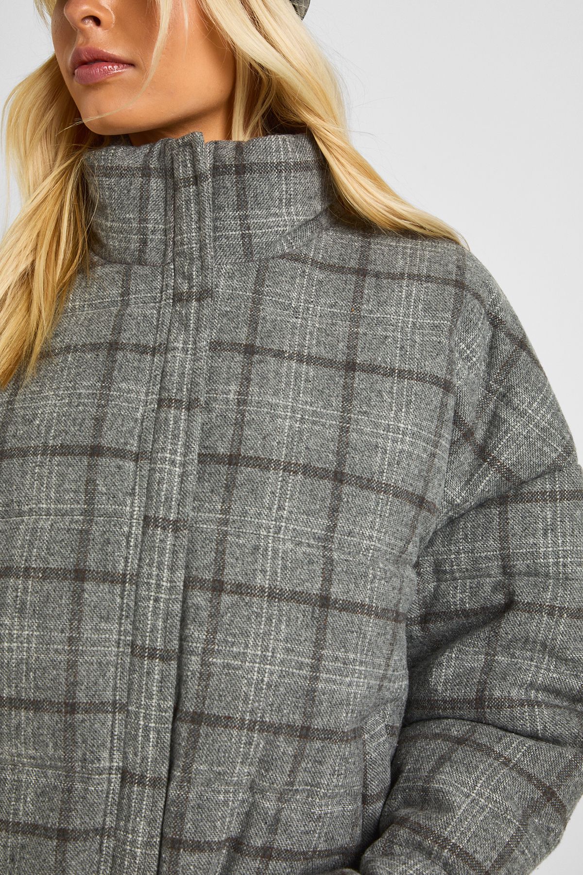 - This on-trend check puffer jacket combines fashion-forward design with practical warmth for the cooler months. The boxy silhouette creates a relaxed, contemporary look that's right on the pulse of current trends. Style with wide-leg joggers and trainers for an effortlessly cool weekend ensemble, or pair with your favourite jeans and boots for casual outings. The cropped length works brilliantly with high-waisted trousers or skirts, making it a versatile addition to your casual wardrobe. Perfect for family gatherings, coffee dates or weekend shopping trips, this Boohoo jacket offers the ideal balance of comfort and style. Add a baseball cap and crossbody bag to complete the look, just as shown. The timeless check pattern ensures this piece will remain a staple in your collection for seasons to come.