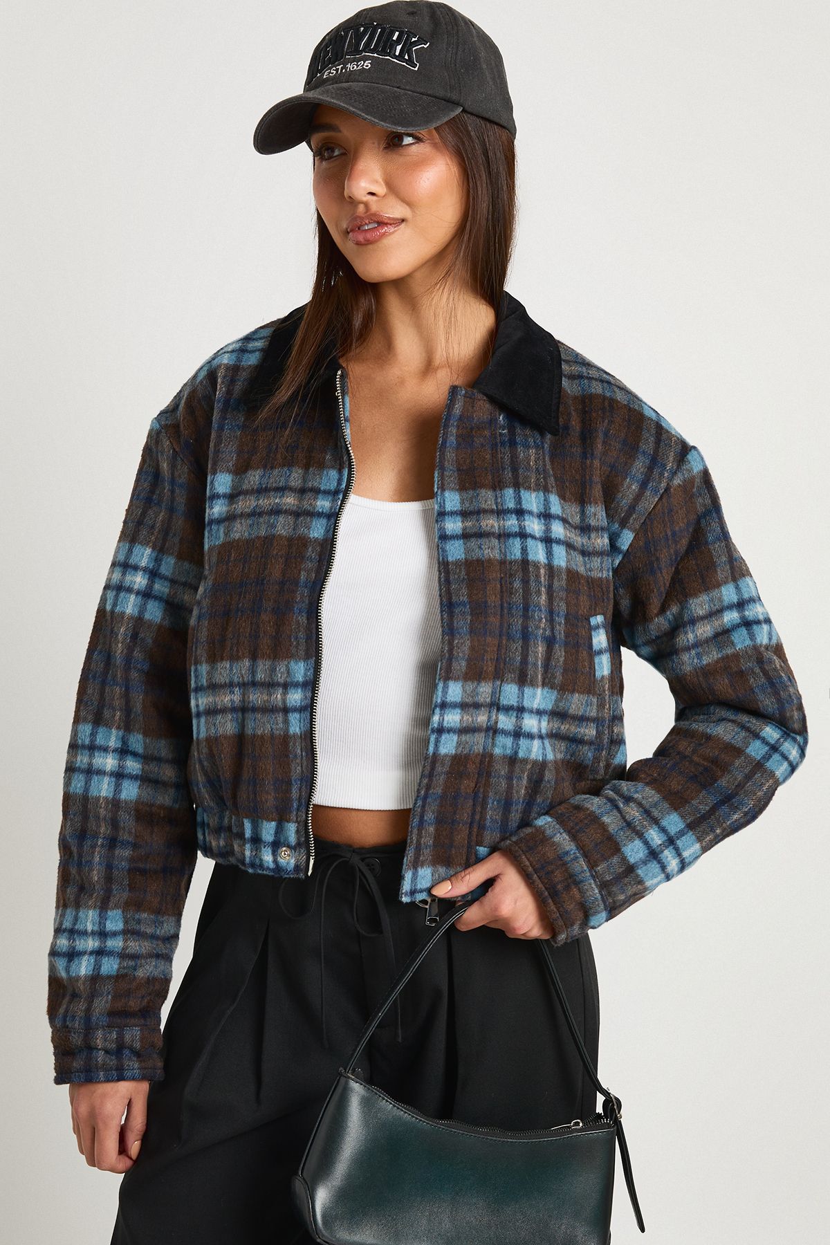 Check Wool Look Bomber Jacket