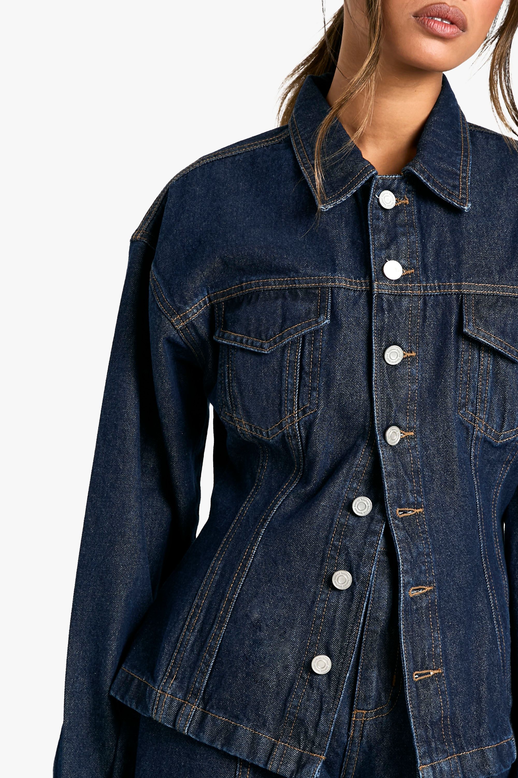 - This denim jacket is a wardrobe essential that effortlessly combines style and versatility. The cinched waist creates a feminine silhouette, while the contrast stitching adds a unique visual element. Perfect for casual outings, it can be styled in numerous ways to suit your mood. Layer it over a simple white tee and wide-leg trousers for a chic daytime look, or throw it on over a floral dress for a touch of edginess. For cooler evenings, pair it with a turtleneck, skinny jeans, and ankle boots. The jacket's adaptability makes it ideal for family gatherings, brunches with friends, or casual Fridays at the office. Its timeless design ensures it will remain a go-to piece in your wardrobe for seasons to come, easily transitioning from day to night with the right accessories.