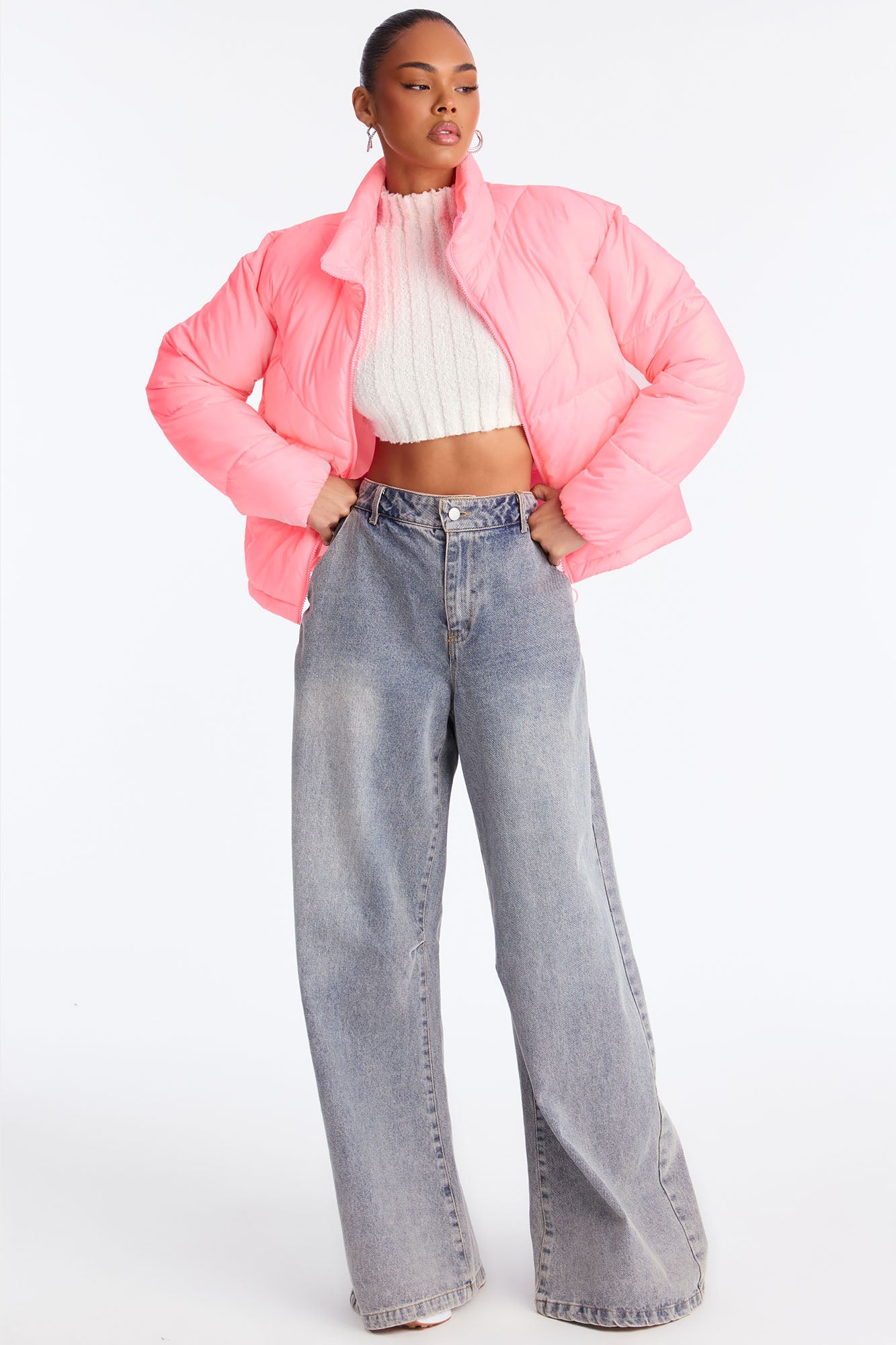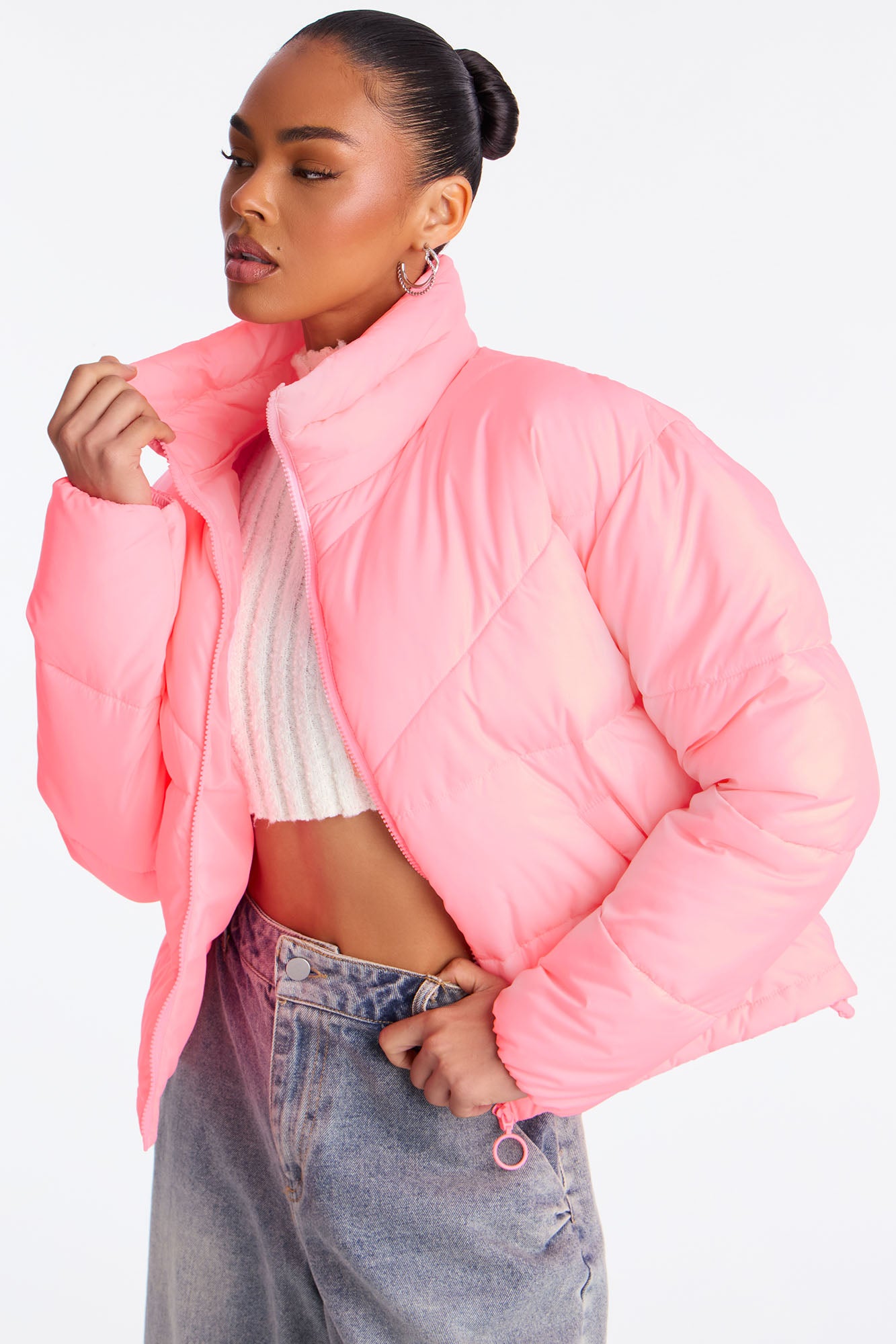 Available In Chartreuse, Navy, Pink And Red.Puffer JacketHigh CollarZip FrontPocketsDrawstring WaistShell/Lining/Filling: 100% PolyesterImported