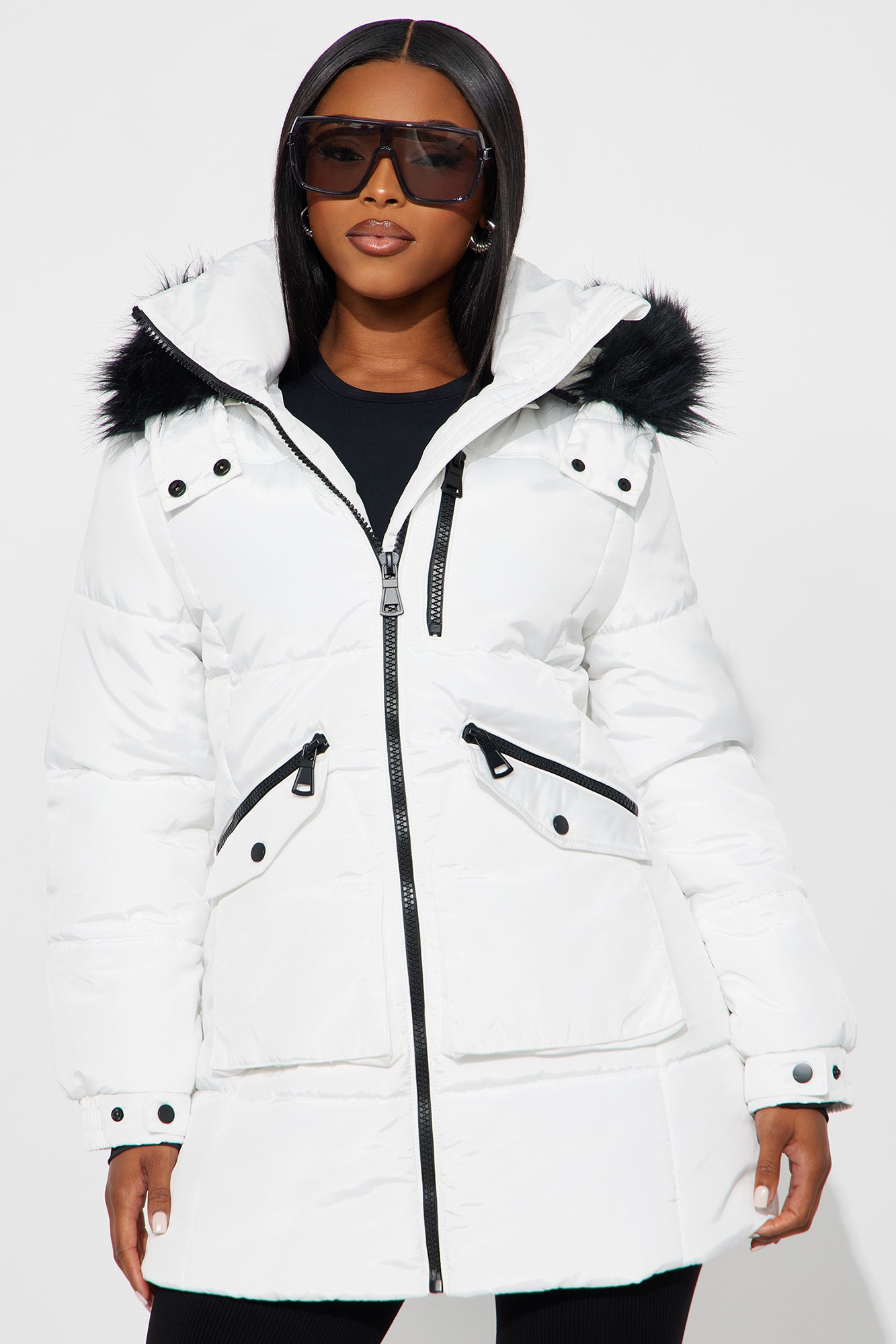 Available In Charcoal, Navy And White.Puffer JacketFaux Fur HoodZipper PocketsZipper ClosureCold WeatherShell/Lining/Filling/Trim: 100% PolyesterImported