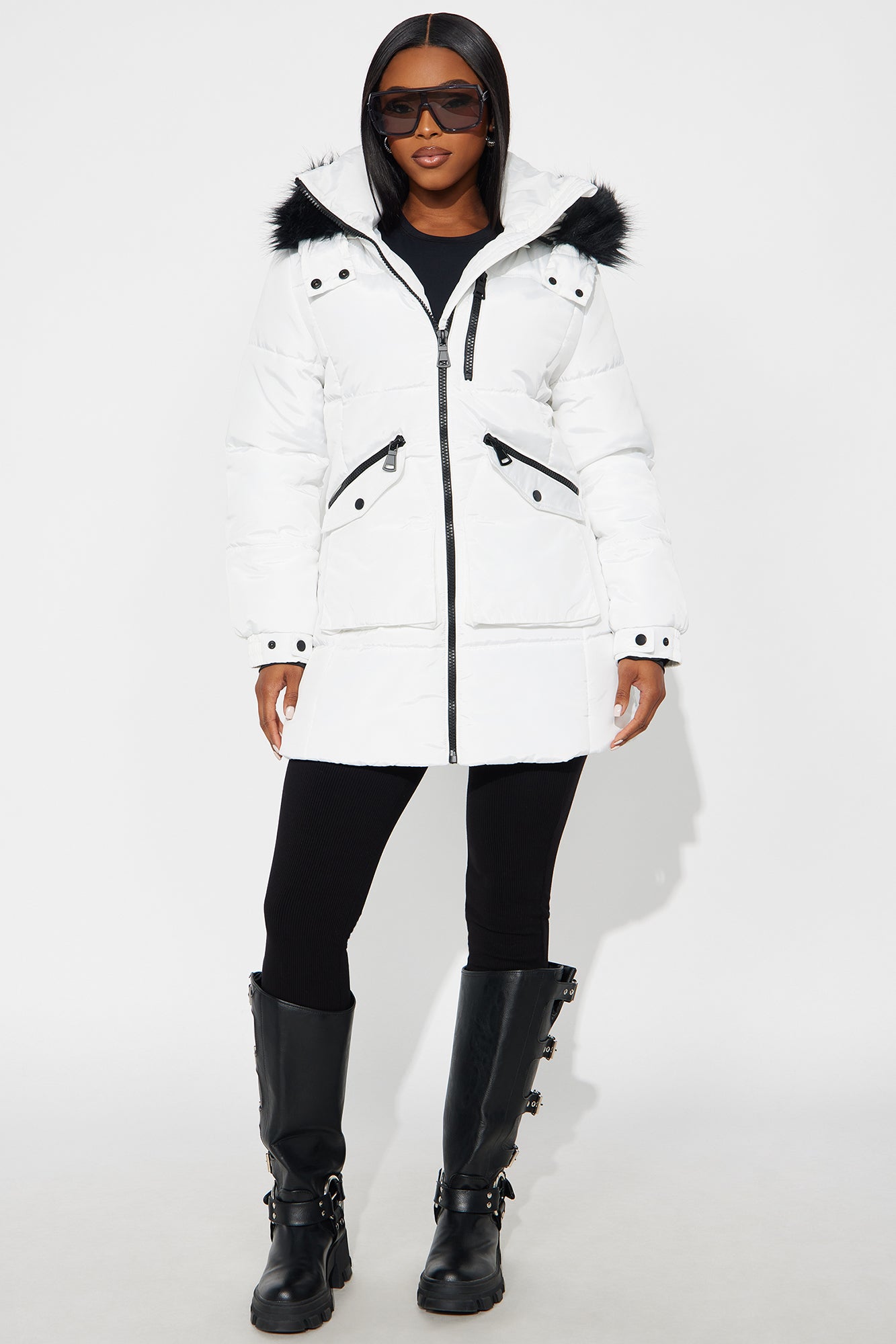 Available In Charcoal, Navy And White.Puffer JacketFaux Fur HoodZipper PocketsZipper ClosureCold WeatherShell/Lining/Filling/Trim: 100% PolyesterImported