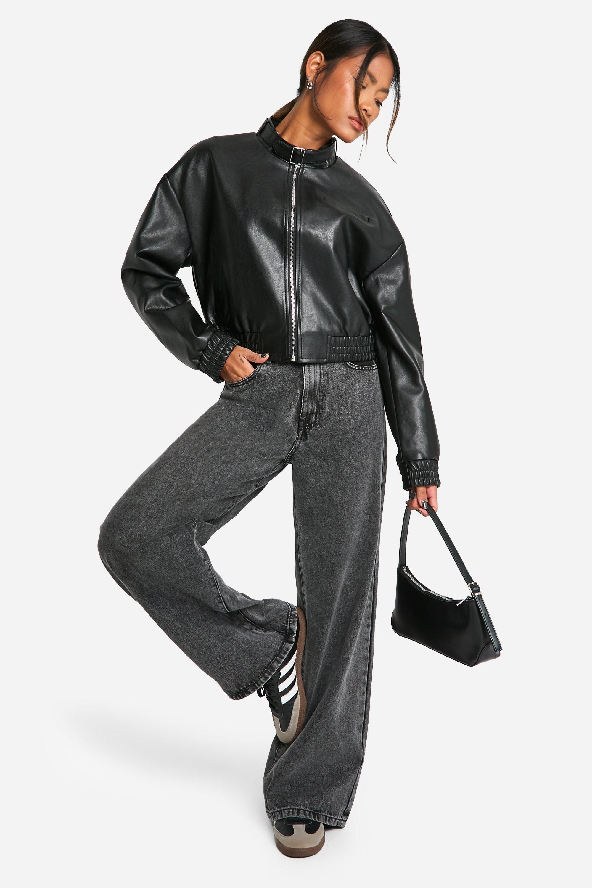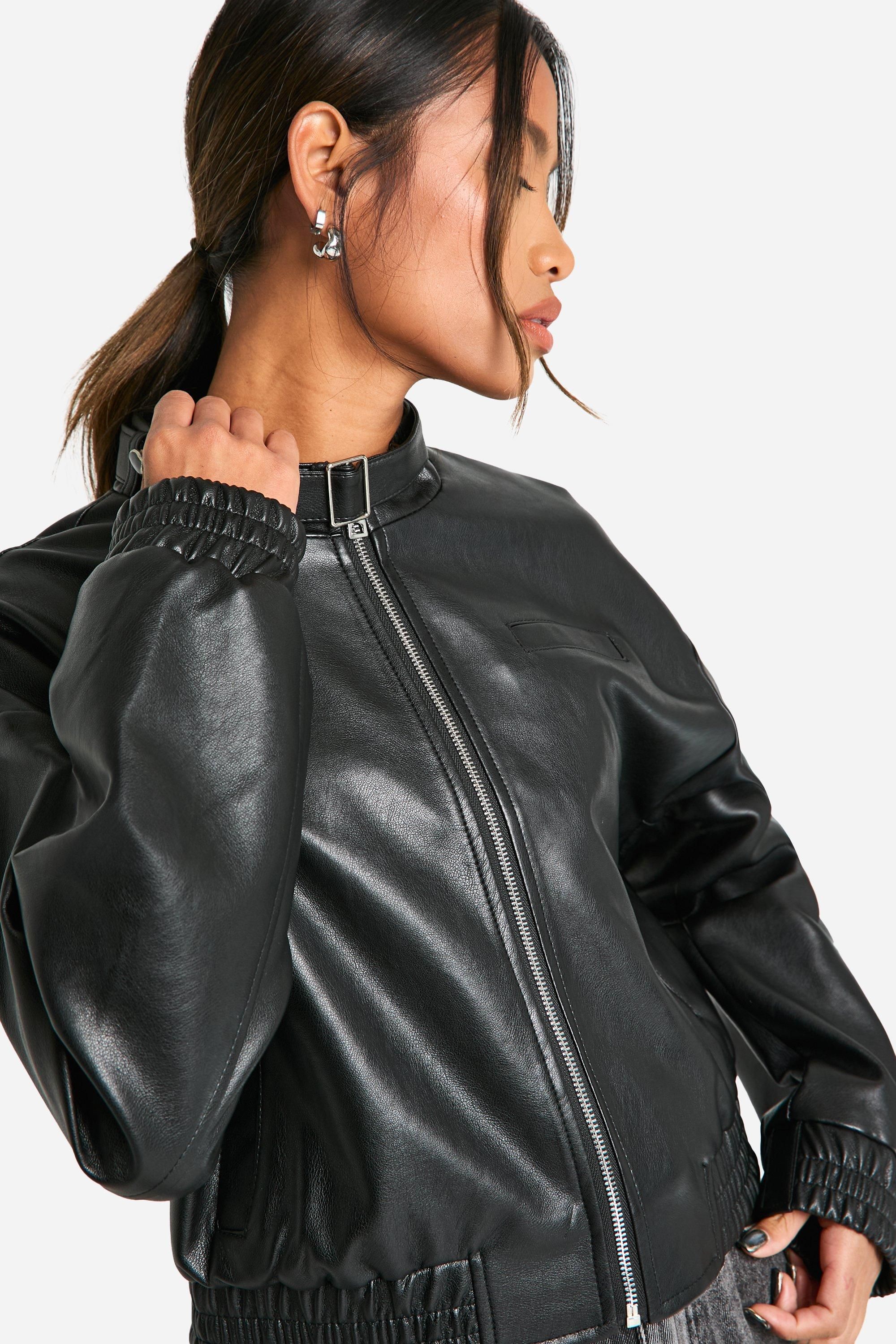 • Sleek faux leather bomber jacket with a modern twist