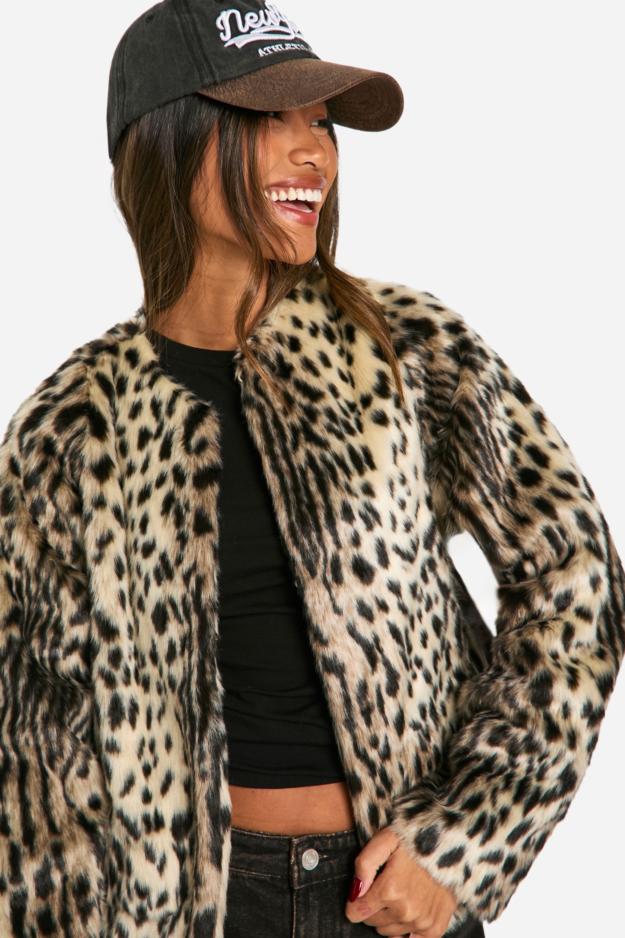 - Make a fierce impression with this eye-catching collarless faux fur jacket. Perfect for those who dare to stand out, this piece combines comfort with wild style. Pair it with a cropped top and high-waisted jeans for a trendy night out look, or throw it over a little black dress to add some drama to your ensemble. The relaxed fit makes it ideal for layering over knitwear on chillier evenings. Whether you're heading to a gig, meeting friends at a trendy bar, or dancing the night away at a club, this jacket is sure to turn heads. For a more casual daytime look, team it with a baseball cap, wide-leg trousers, and trainers. The possibilities are endless with this versatile piece that effortlessly transitions from day to night, ensuring you're always ready for whatever the urban jungle throws your way.