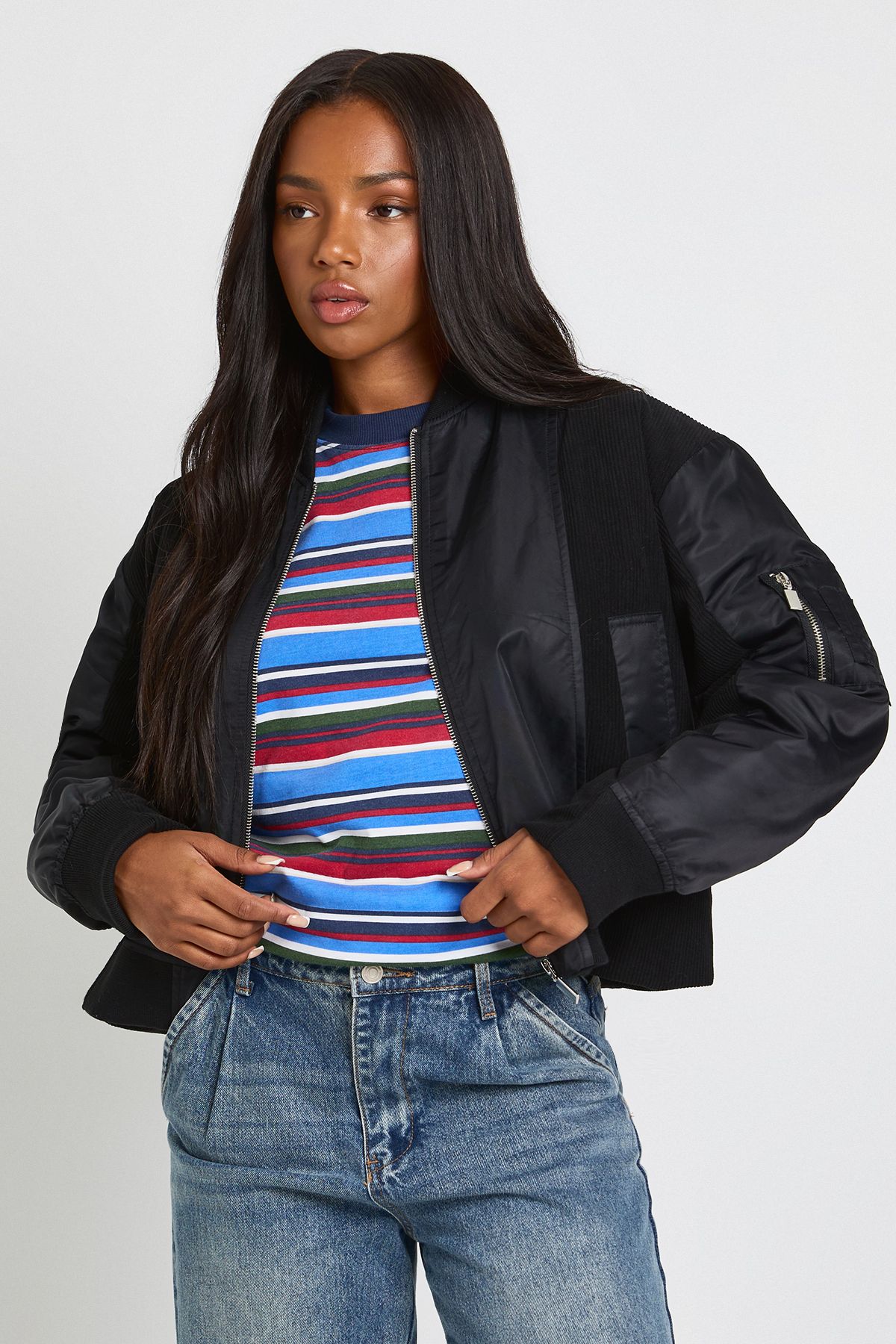 • Front zip fastening for versatile styling options Make a statement with this eye-catching Contrast Bomber Jacket from Boohoo. The oversized silhouette offers both comfort and on-trend appeal, perfect for layering over your favourite casual outfits. Style with a vibrant striped top and wide-leg jeans for a relaxed weekend look, or throw over a simple tee and leggings for quick coffee runs. The contrast panelling adds visual interest to this versatile piece, making it ideal for family gatherings or casual meet-ups with friends. Complete the look with trainers and a crossbody bag for an effortlessly stylish ensemble that works from day to night. This bomber jacket is the perfect addition to your casual wardrobe, offering both practicality and fashion-forward design in one essential piece.