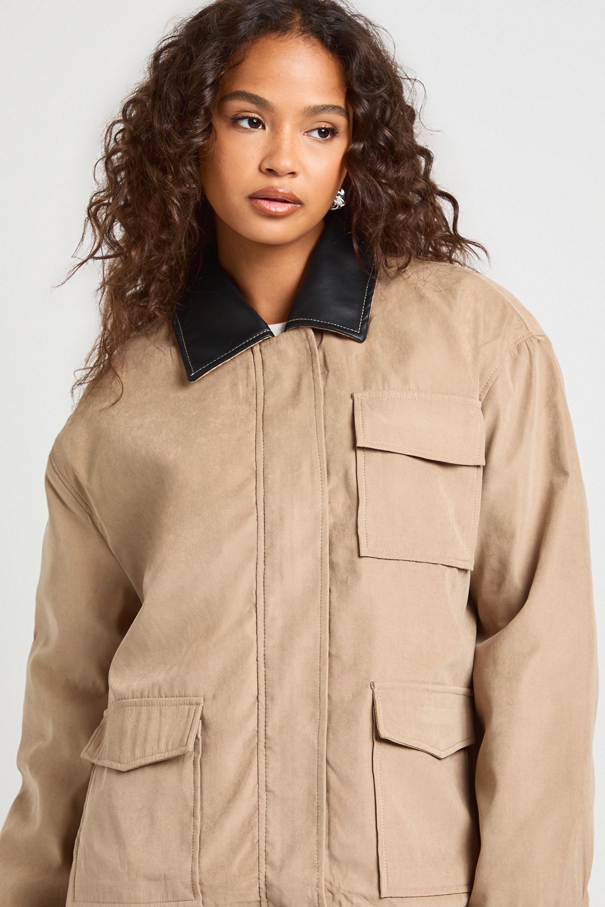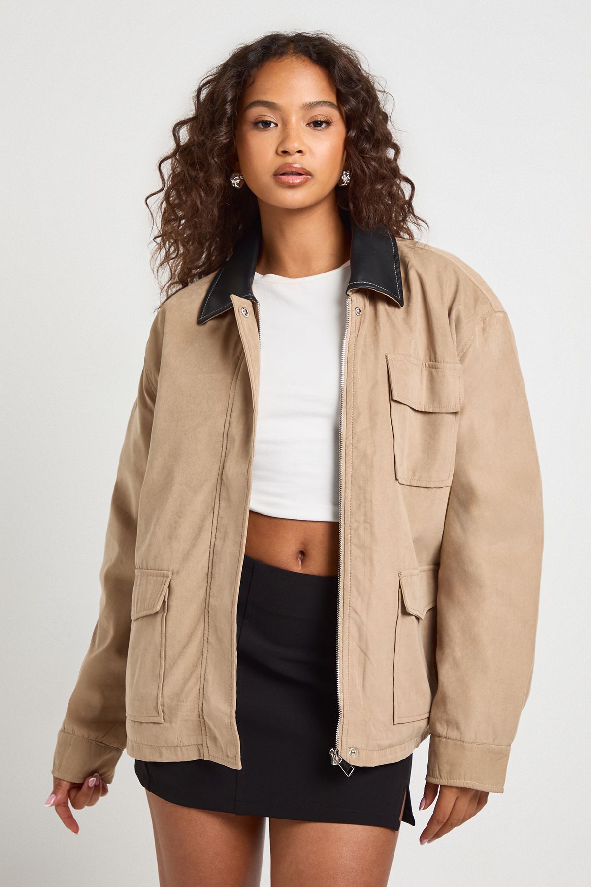 - Make a bold statement with this oversized jacket featuring a striking contrast collar. The roomy fit offers both comfort and style, perfect for layering over your favourite outfits. Multiple pockets add functionality, while the long sleeves with adjustable cuffs ensure adaptability to changing weather. Style it with light-wash denim jeans and a classic white tee for an effortlessly cool look. This jacket is ideal for casual outings, from coffee dates to weekend shopping trips. For a more put-together ensemble, pair it with tailored trousers and ankle boots. The versatile design makes it a go-to piece for family gatherings or laid-back evenings with friends. Embrace the oversized trend and let this jacket become your new wardrobe staple for all your casual adventures.