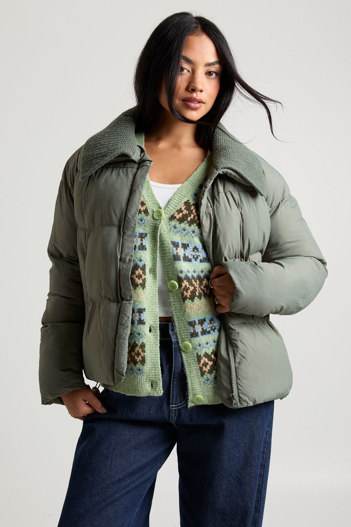 Contrast Rib Collar Puffer Jacket