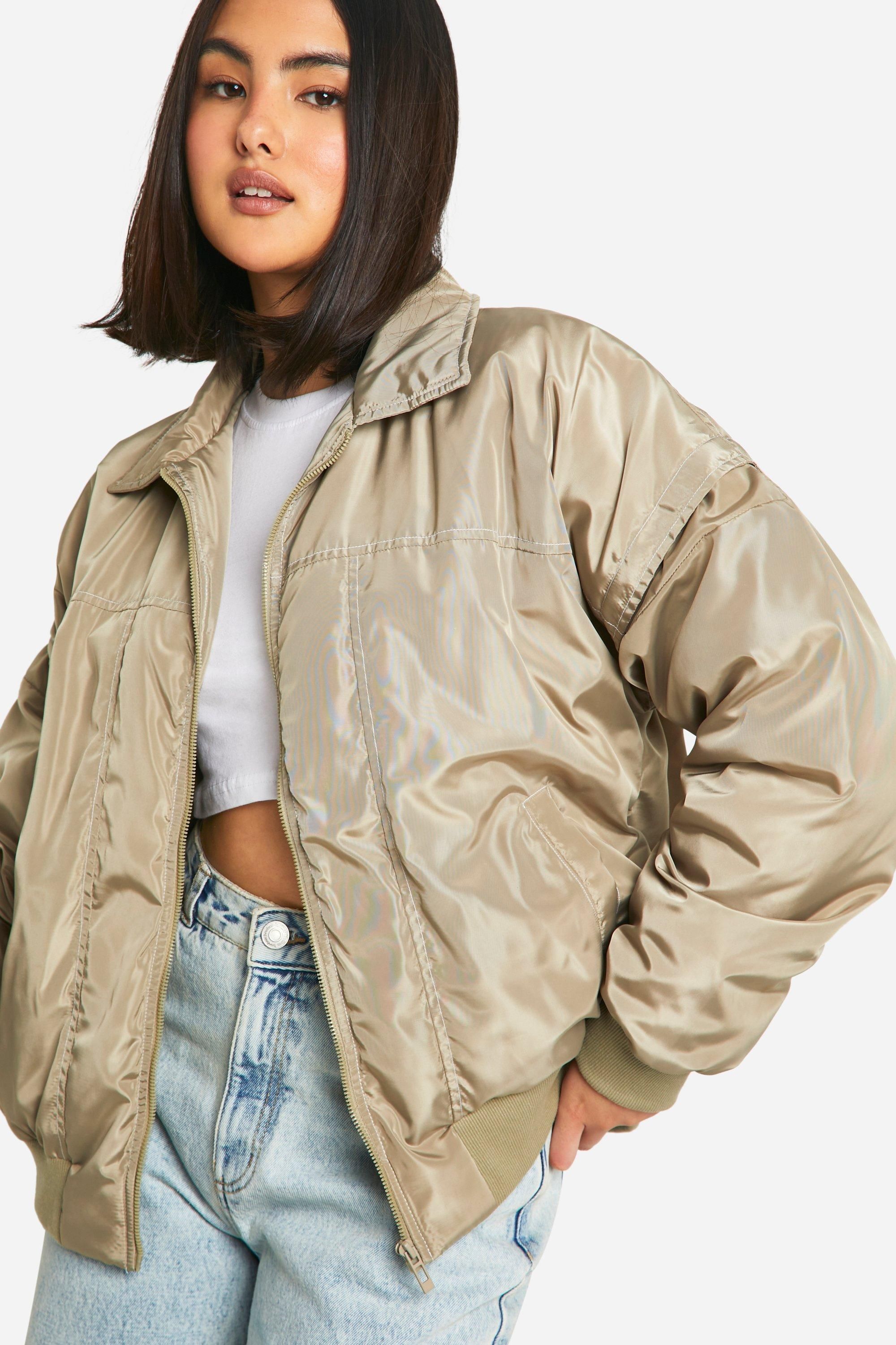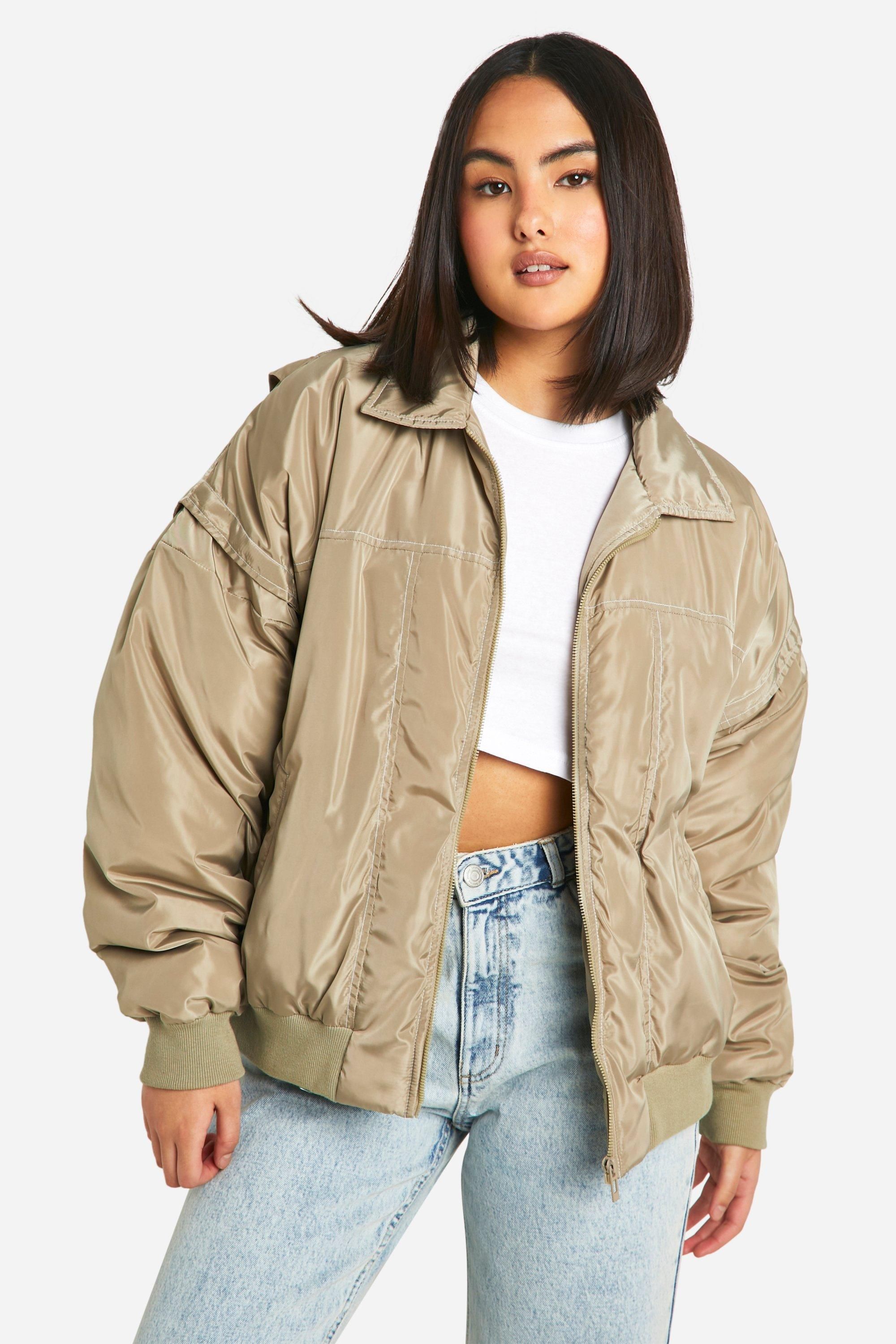 • Contrast Stitch Detail Oversized Bomber Jacket