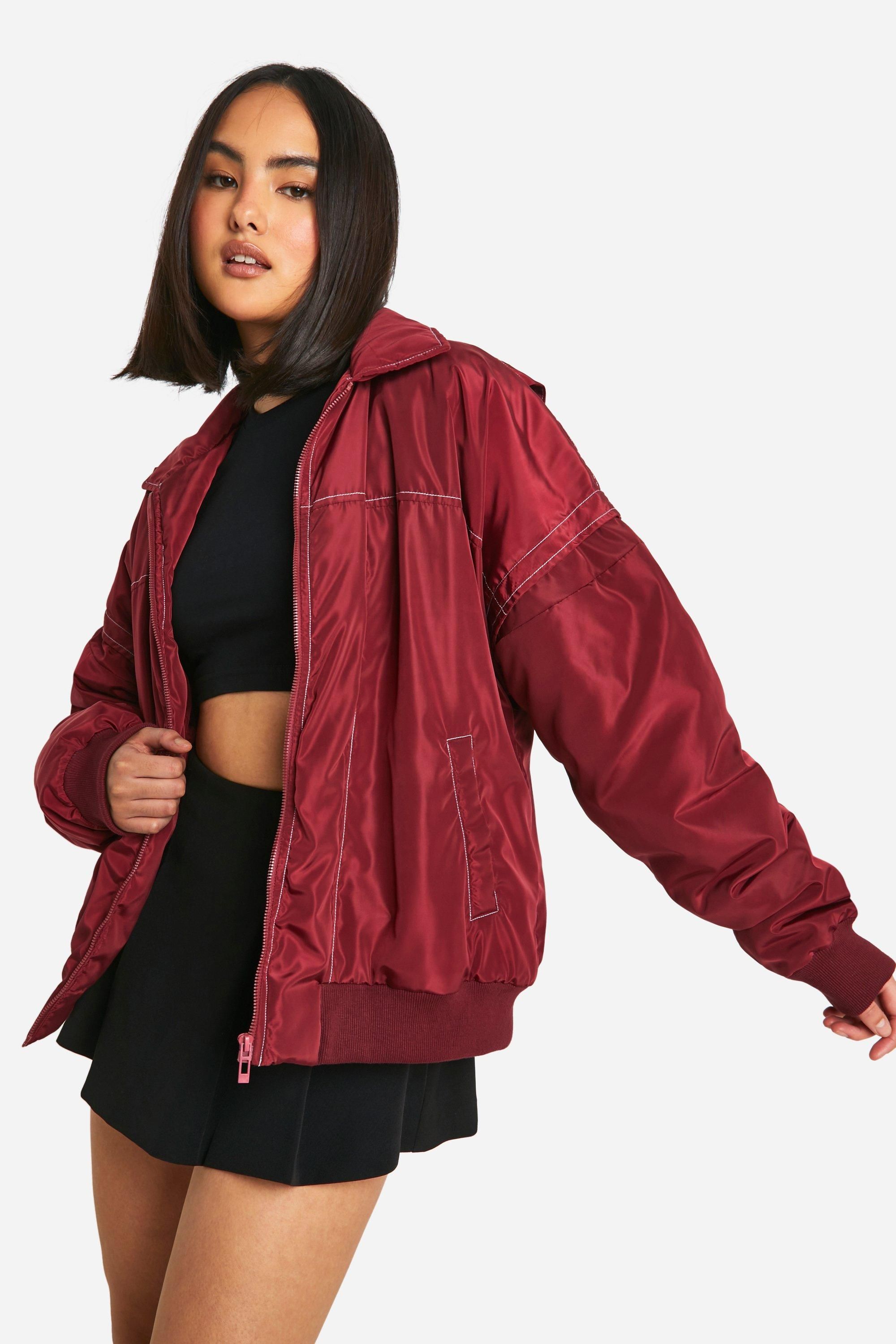 Contrast Stitch Detail Oversized Bomber Jacket