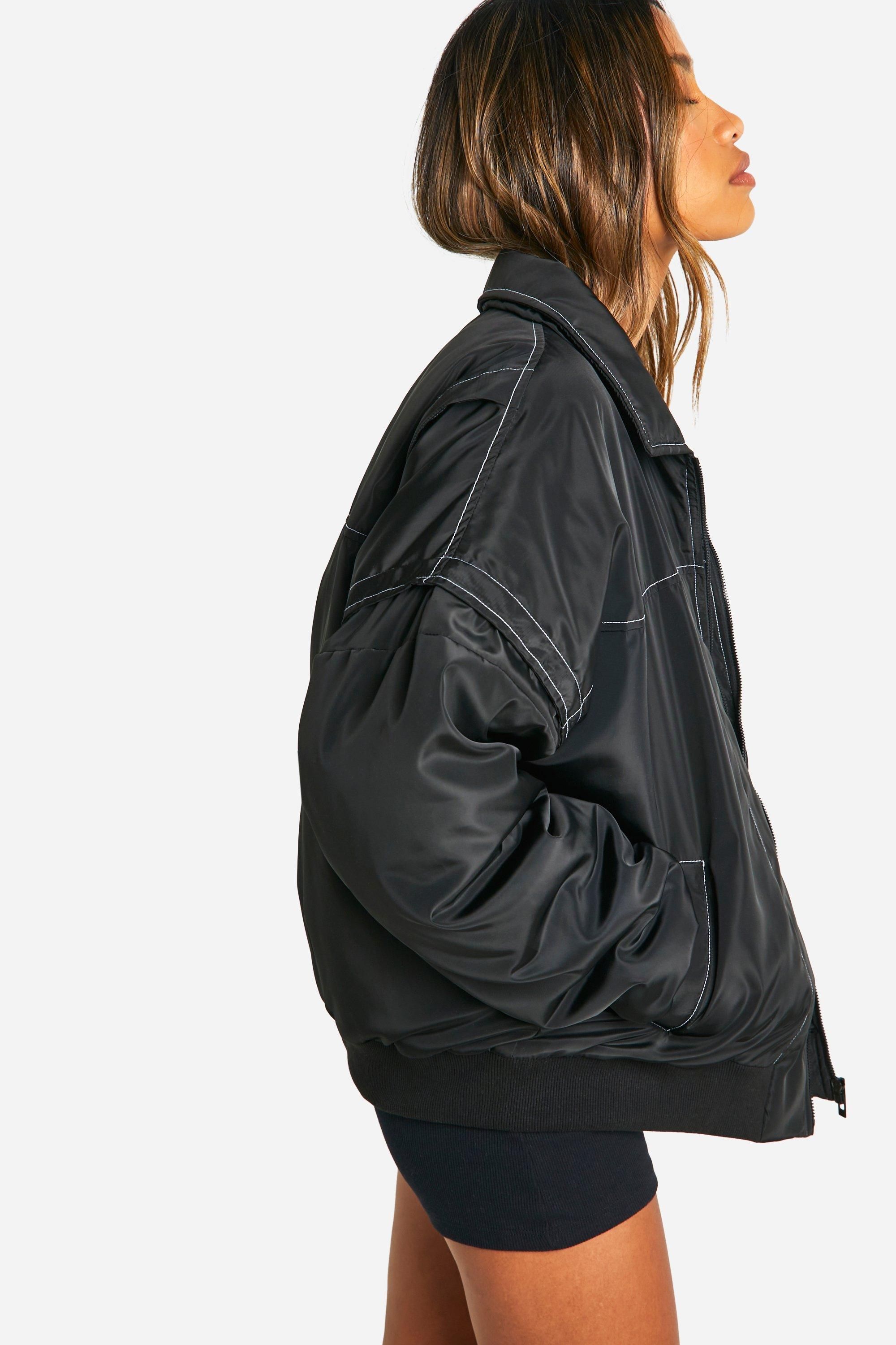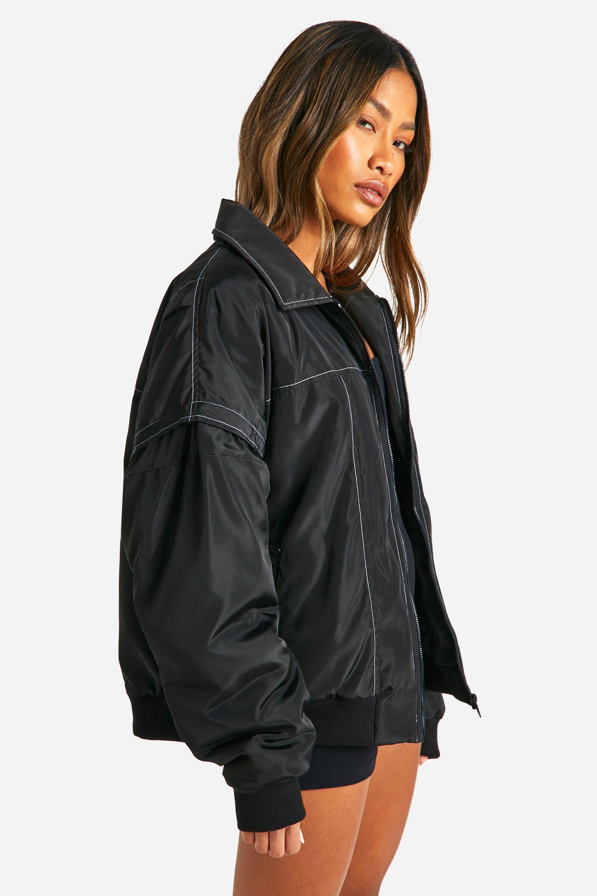 - Keep things casual but always on-trend with a piece of outerwear perfection, the bomber jacket. A light jacket featuring a gathered, ribbed waistband and matching cuffs, a bomber jacket is versatile, timeless, and the perfect way to edge up your casual wear. Wear your new women's bomber jacket with a shirt and stripe joggers for the hottest look of the moment: sports luxe, or layer a varsity jacket over a t shirt dress for a fresh new-season look.Style: Bomber JacketFabric: PolyesterSleeve Length: Long Sleeve
