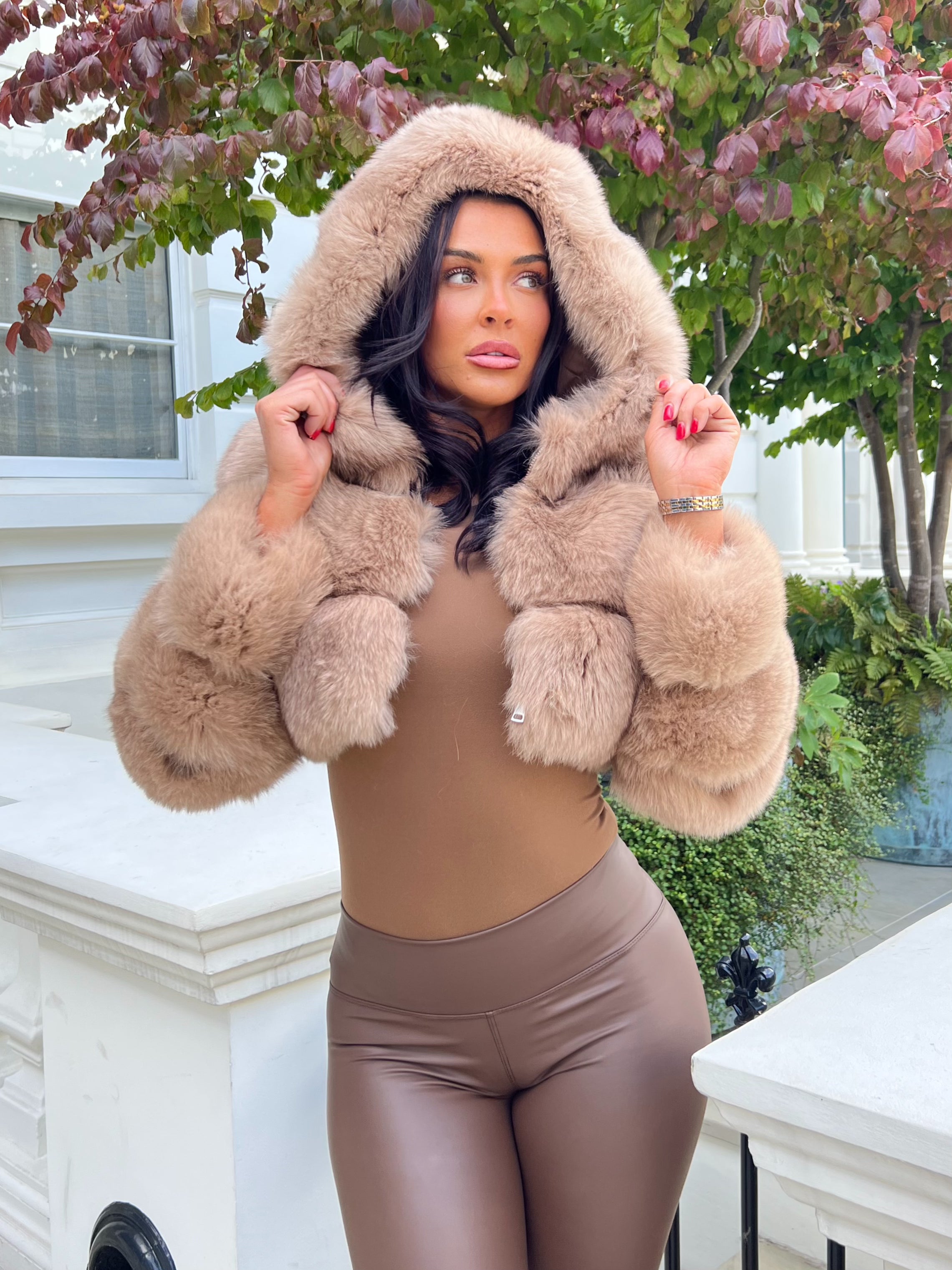 This Tan Luxury Fur Hooded Jacket is made of the highest quality materials, giving you superior warmth and comfort. Its soft hood and luxurious fur trim are designed for maximum protection from the elements. It's a must-have wardrobe piece for any discerning fashion staple.