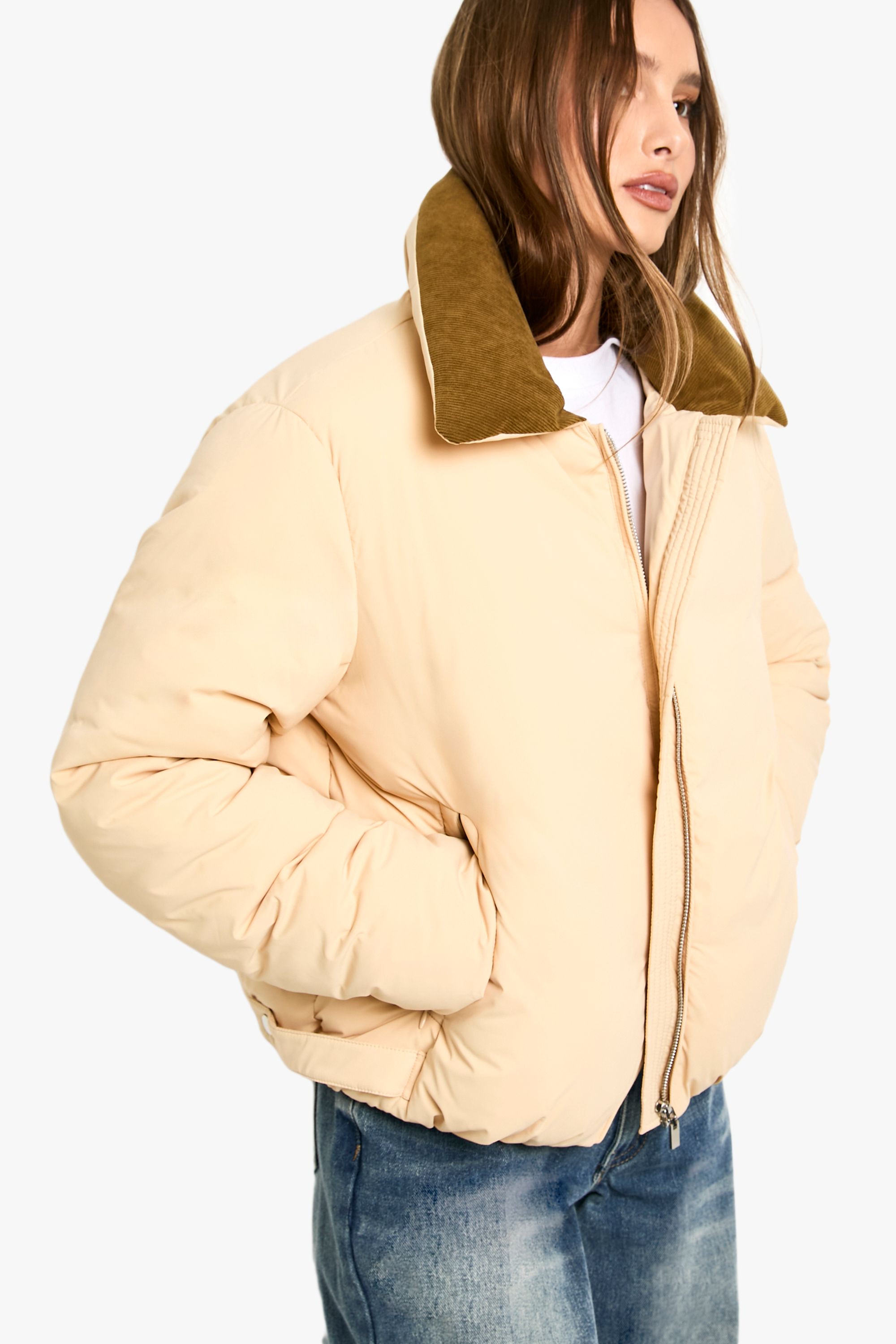 • Puffed silhouette for a trendy, voluminous look Make a statement with this eye-catching quilted jacket, perfect for the fashion-forward woman who loves to stay cosy without compromising on style. The contrasting corduroy collar adds a touch of retro charm, whilst the puffed silhouette creates a bold, contemporary look. Ideal for casual outings, this versatile piece can be styled with wide-leg jeans and trainers for a laid-back weekend brunch, or thrown over a midi dress and ankle boots for an effortlessly chic ensemble. The relaxed fit allows for easy layering, making it a go-to choice for unpredictable British weather. Whether you're heading to a family gathering or meeting friends for a coffee, this jacket will keep you warm and stylish throughout the season.