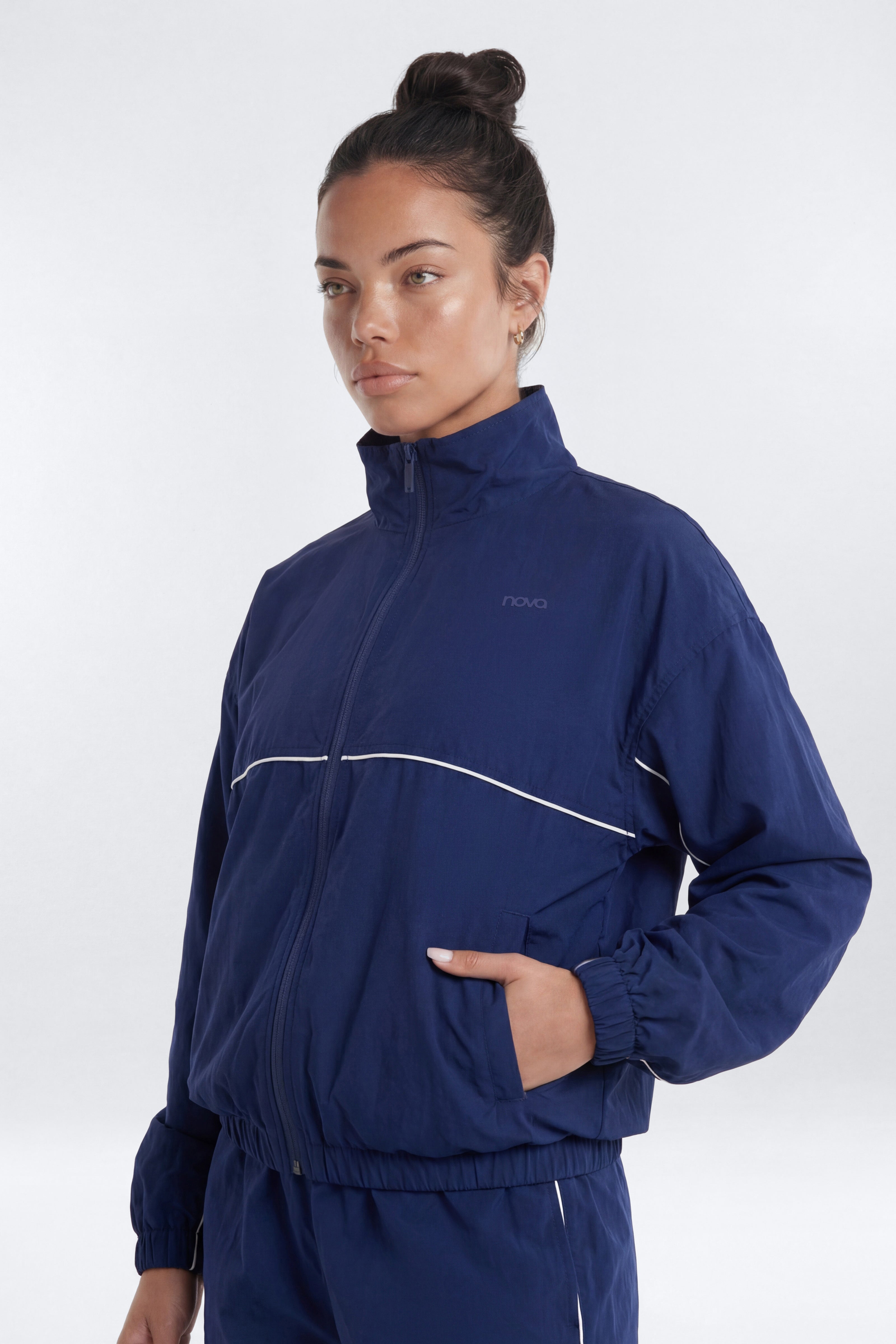 Available In Green/combo And Navy/combo.NylonMock NeckSide PocketsElastic HemFull ZipPair With "Nylon 32" Pocket Track Pant"Self: 100% NylonLining: 100% PolyesterImportedAvailable In Plus Sizes