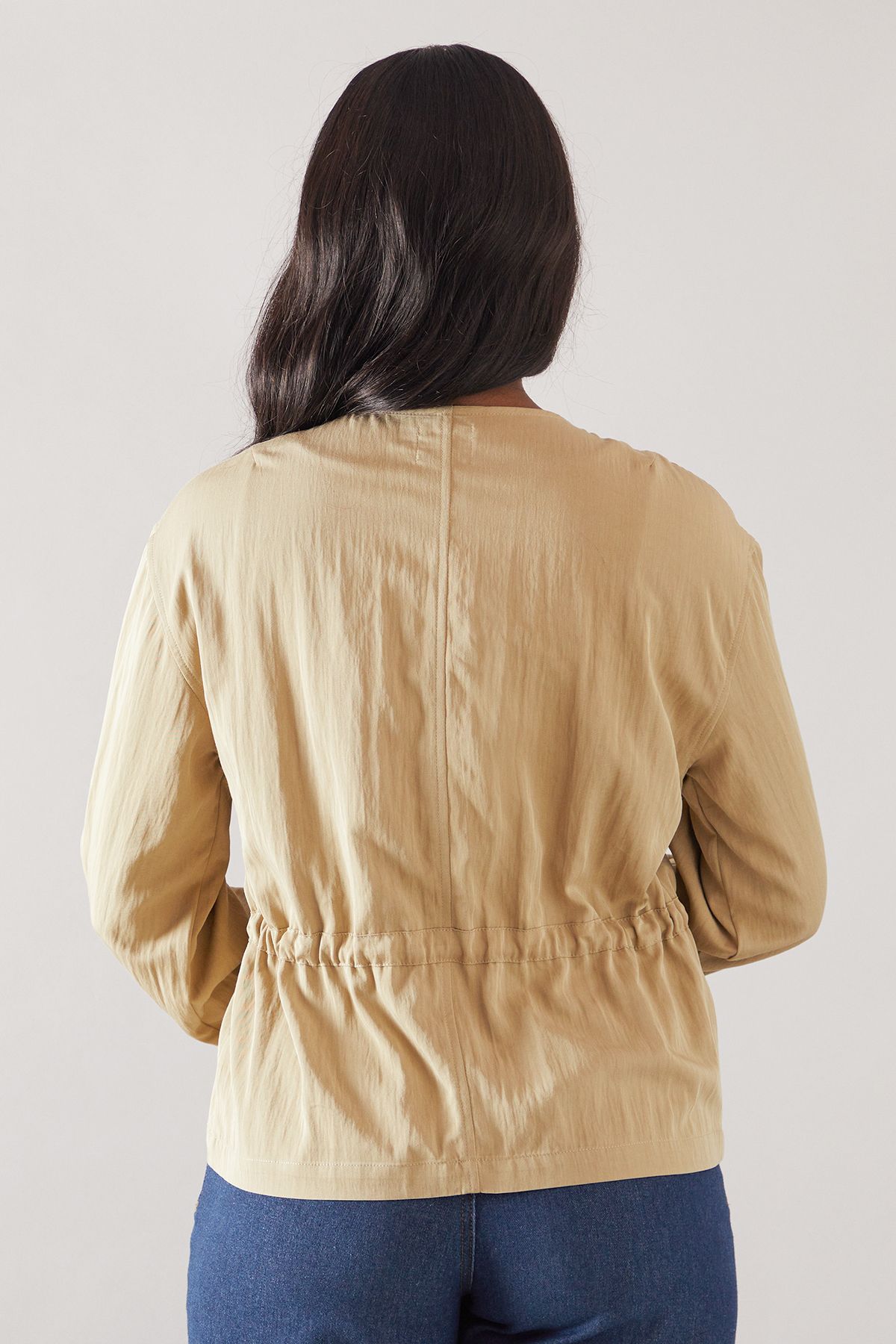 - This versatile utility jacket combines practicality with sophisticated style. The clean lines and relaxed silhouette make it an essential layering piece for your daytime wardrobe. Style as seen with a simple white vest top, wide-leg jeans and trainers for casual weekend brunches or shopping trips. For a more refined look, pair with tailored trousers and loafers when meeting friends for lunch. The adjustable drawstring waist allows you to customise the fit to your preference, creating definition or a more relaxed look. Perfect for family gatherings or countryside walks, this jacket offers both functionality and elegance. The cotton-blend fabric provides comfort whilst maintaining structure, making it an ideal companion for unpredictable British weather. A true wardrobe staple that will complement your existing collection beautifully.