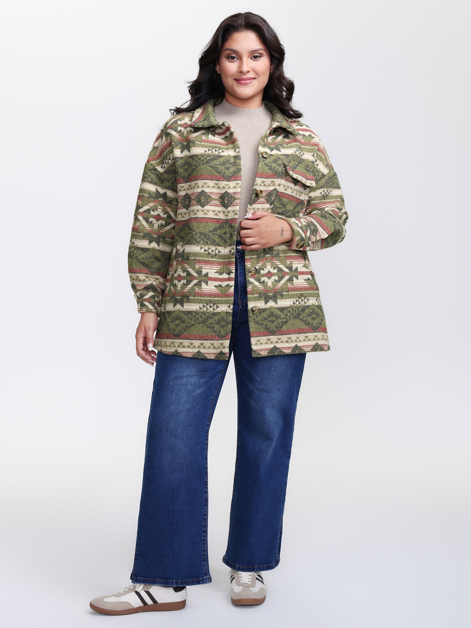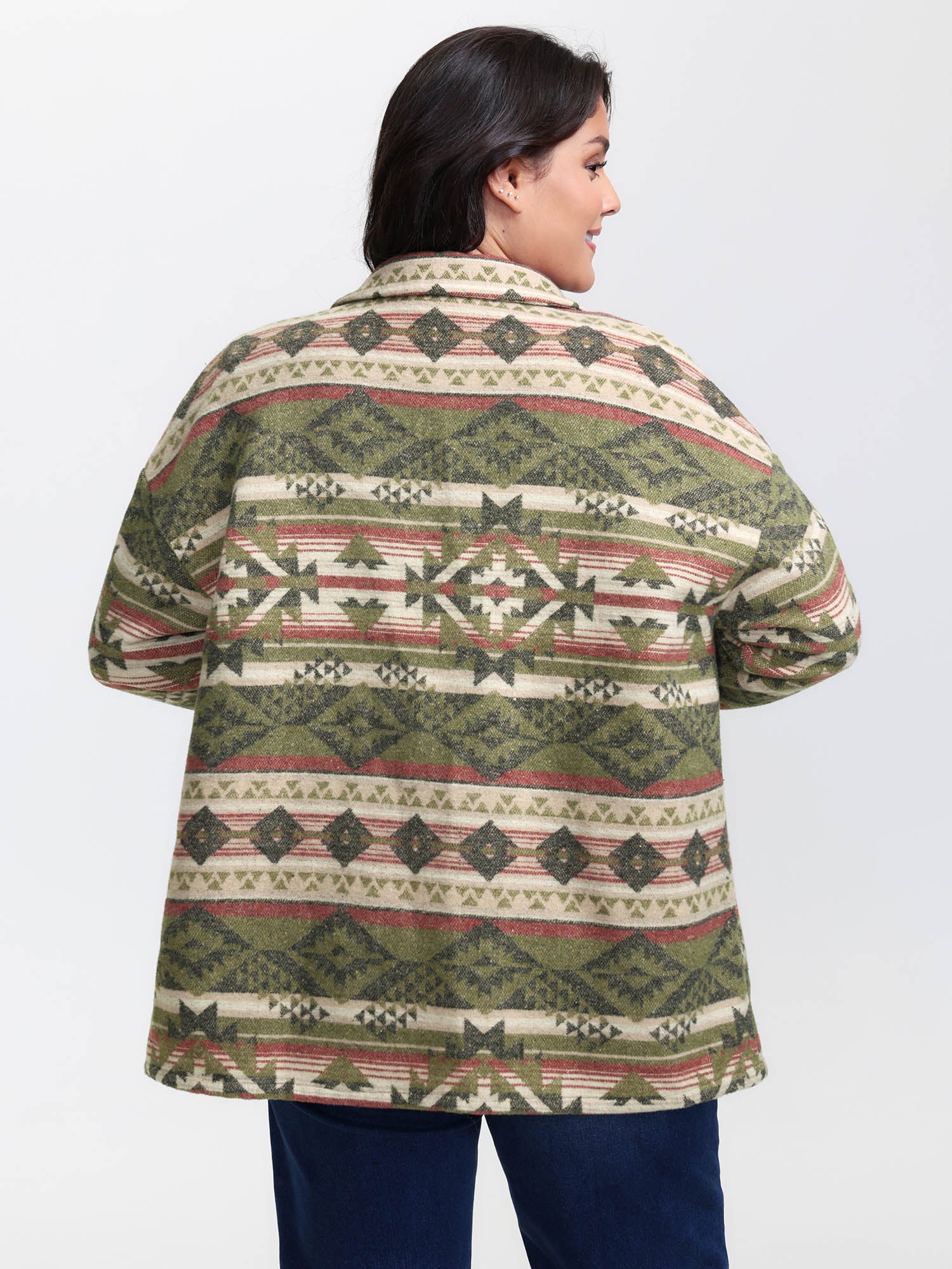 Cozy Print Wool Blend Pockets Jacket
