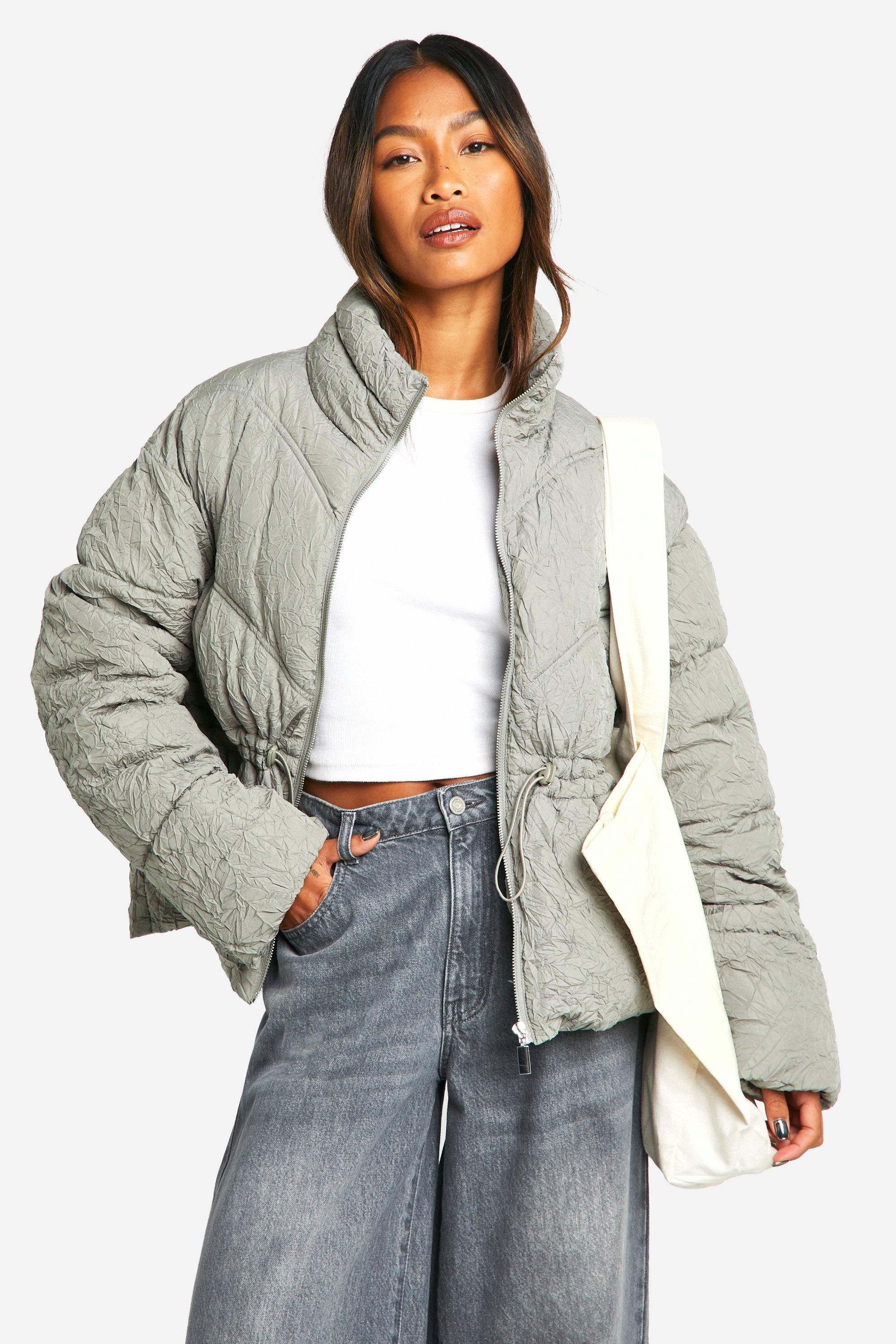Crinkle Cinched Waist Puffer Jacket