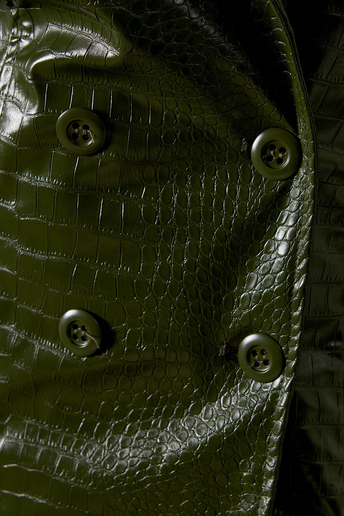 - Coordinating mini skirt creates a sleek, cohesive ensemble Make a statement with this daring faux leather jacket from Warehouse. The eye-catching croc-embossed texture adds a touch of rebellious glamour to your wardrobe, perfect for the confident woman who isn't afraid to stand out. The waist detail cleverly cinches in your silhouette, creating a feminine shape that balances the edgy material. Style this versatile piece for a range of occasions, from desk to dinner. For a bold day look, pair with the matching mini skirt, a crisp white tee, and chunky loafers. When night falls, transform your outfit by swapping the tee for a slinky camisole and adding strappy heels. This jacket is a true day-to-night essential, allowing you to seamlessly transition from office to evening drinks with just a few simple tweaks.