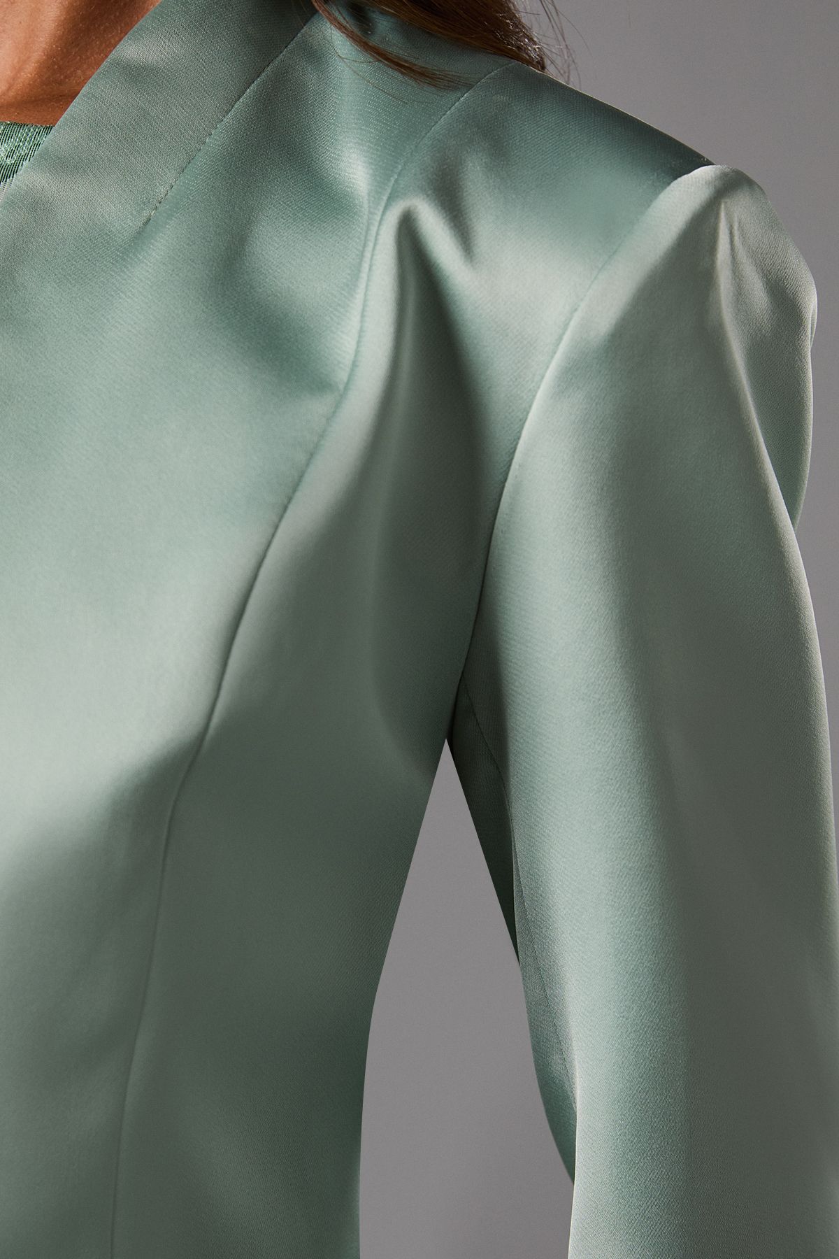 - Luxurious satin crop jacket with a sophisticated collarless design