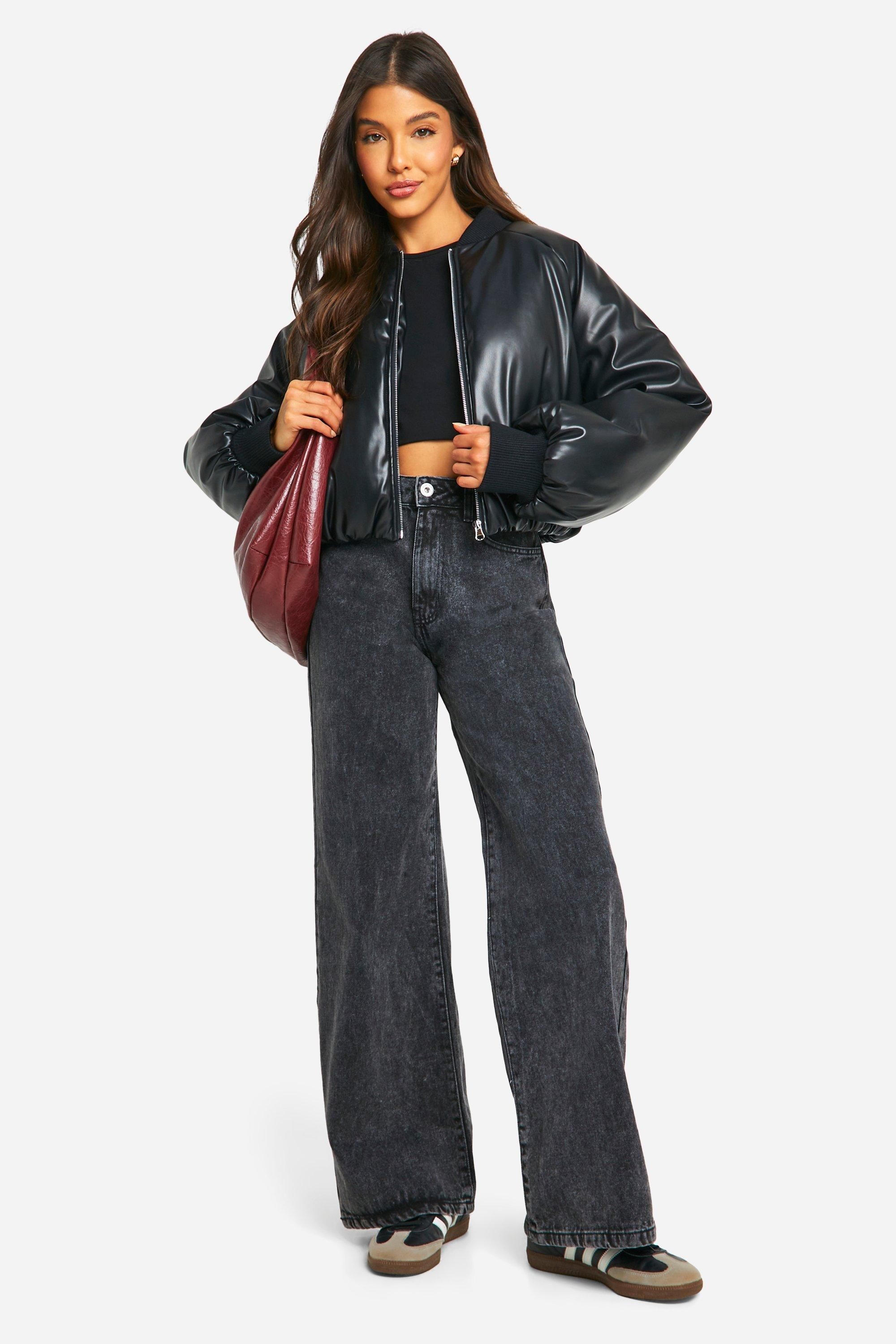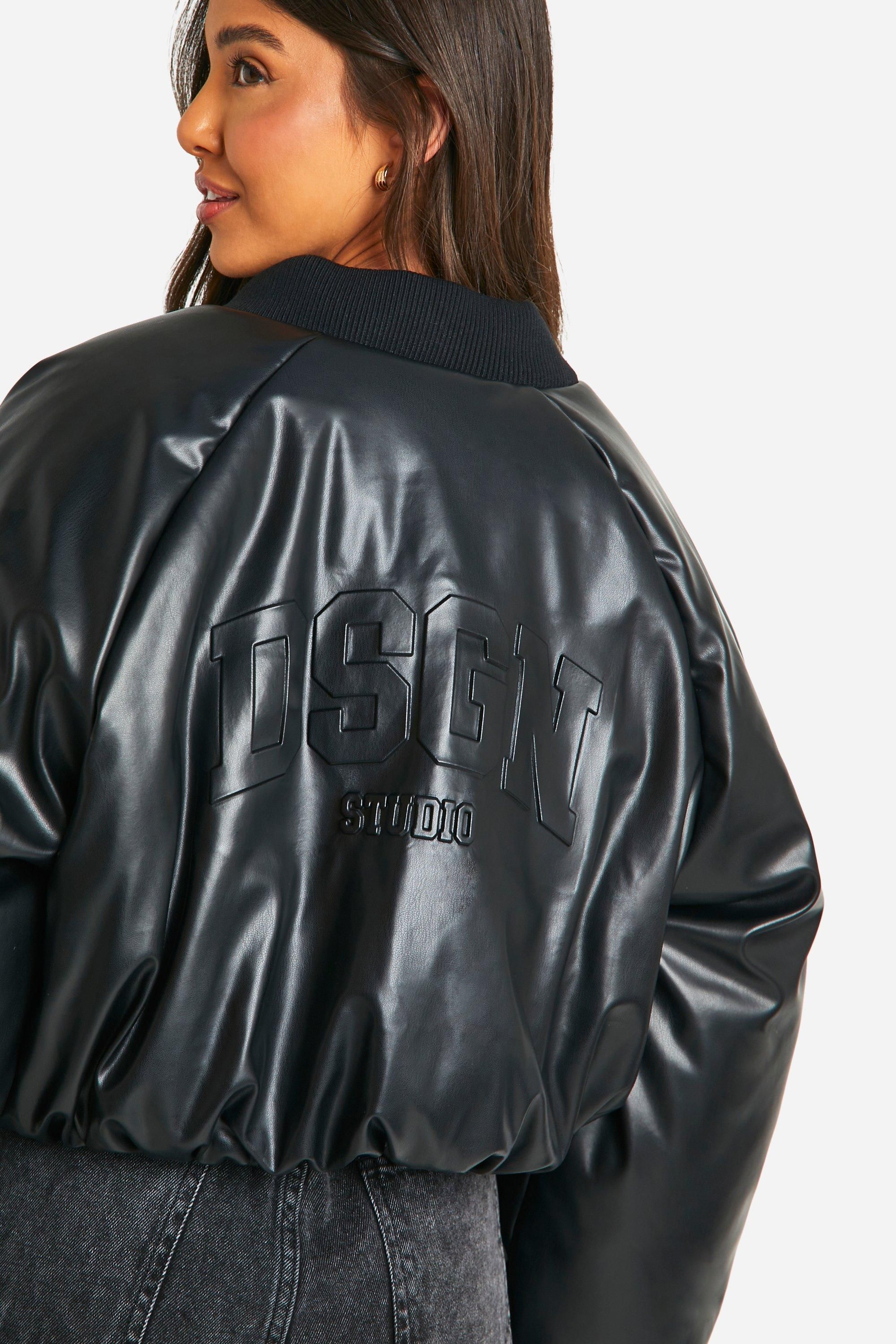DSGN Studio Embossed Faux Leather Oversized Bomber Jacket