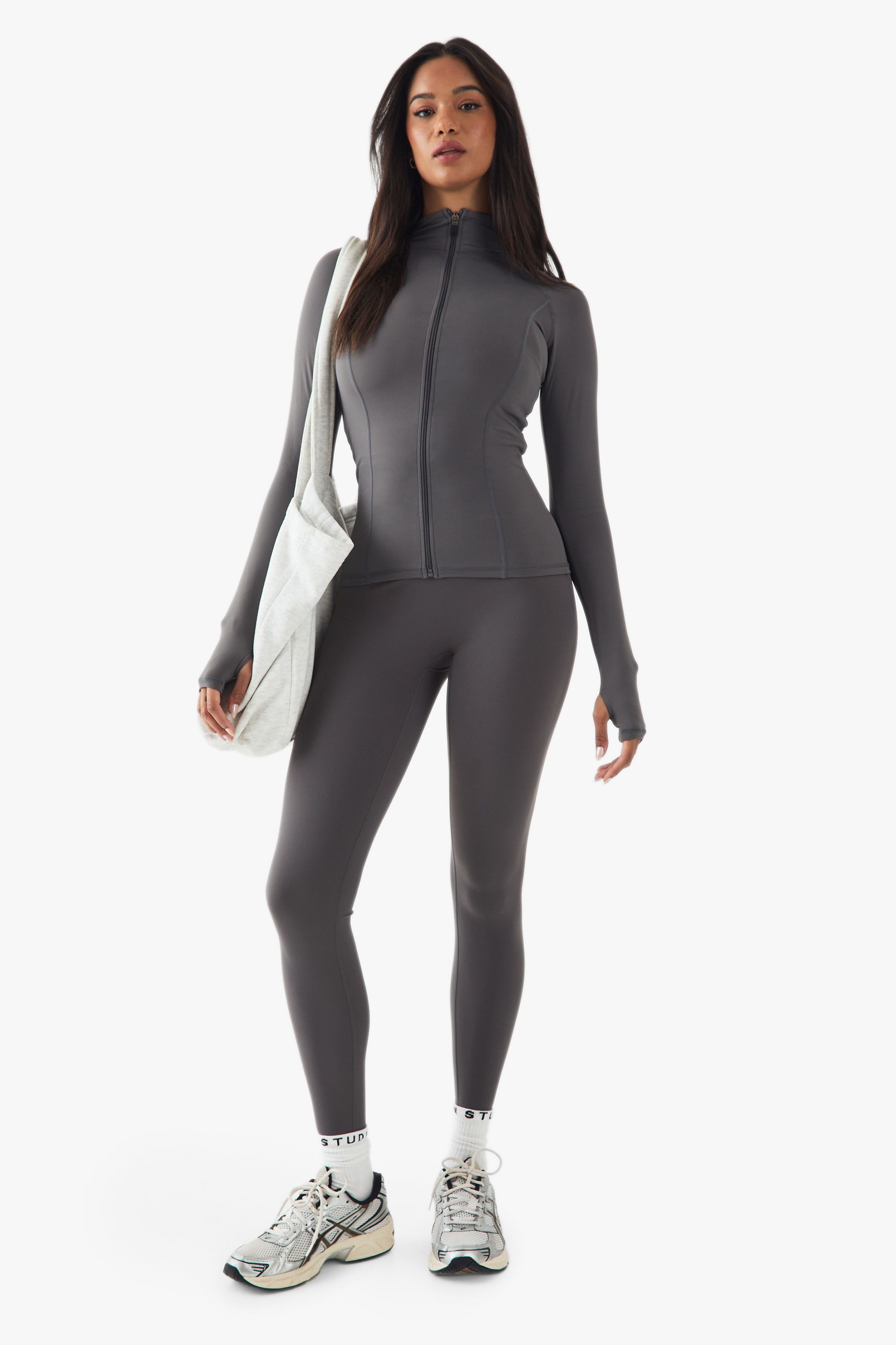 - This DSGN Studio zip jacket combines functionality with contemporary style for your active lifestyle. The second-skin fit moves with your body whilst providing gentle compression for supported movement during any workout. Perfect for layering in cooler weather or wearing alone during medium-intensity training sessions. Style with the matching leggings as shown for a coordinated gym ensemble, or pair with your favourite workout bottoms. The versatile design transitions effortlessly from morning yoga to afternoon errands - simply throw on with trainers and a tote bag for a fashionable athleisure look. Ideal for those who refuse to compromise on style whilst pursuing their fitness goals, this jacket will quickly become your go-to piece for both indoor and outdoor training sessions.