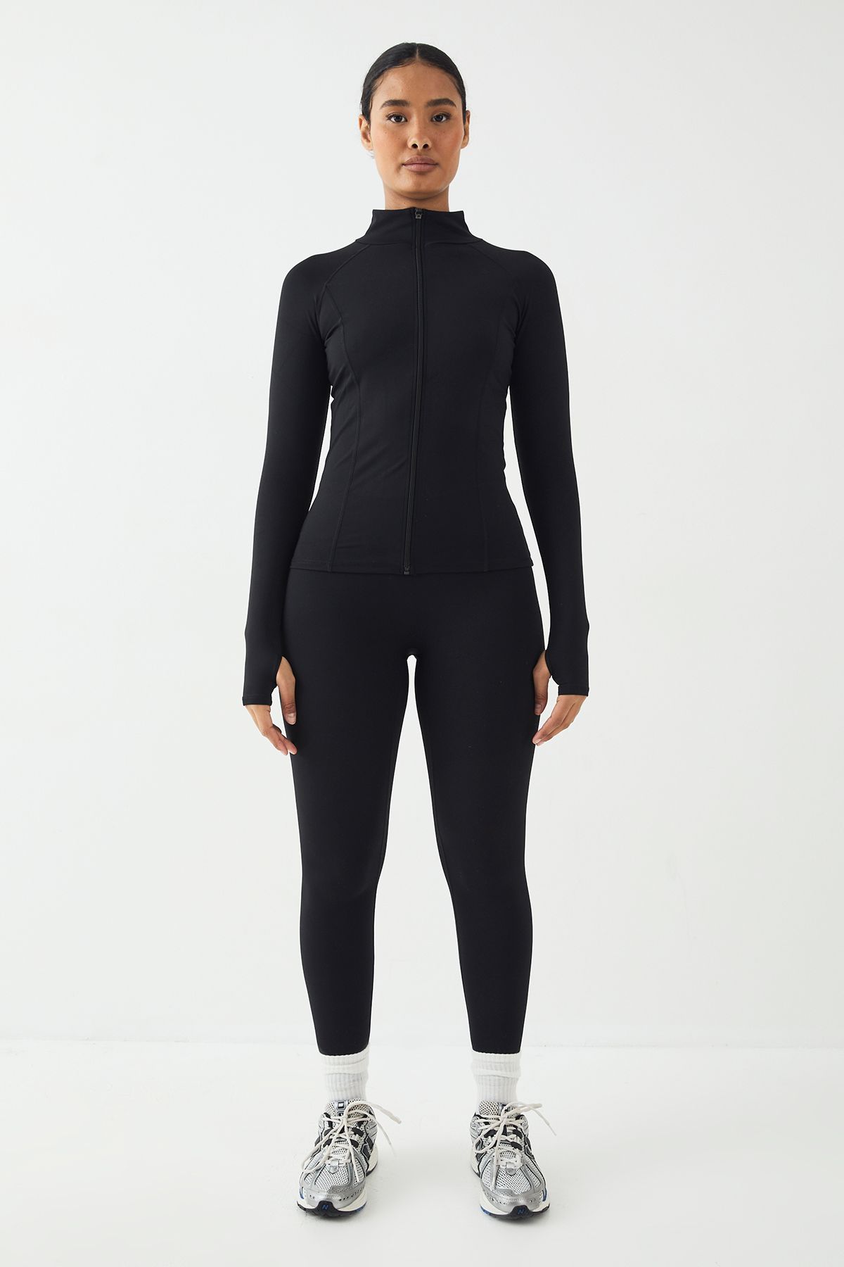 • The DSGN Studio Sculpt Jacket redefines activewear with its body-contouring silhouette and technical features. Designed to move with you, this ultra-soft jacket combines functionality with fashion-forward aesthetics. The streamlined fit and high neckline create a flattering profile whilst the full-length zip allows for customisable ventilation during your workout. Style with the matching leggings as shown for a coordinated gym ensemble, or pair with your favourite sports shorts for high-intensity training sessions. The thoughtful thumb hole detail keeps sleeves in place during dynamic movements. Perfect for morning runs, yoga sessions, or simply elevating your athleisure wardrobe, this versatile piece transitions seamlessly from workout to weekend casual when paired with trainers and a crossbody bag for an effortlessly cool off-duty look.
