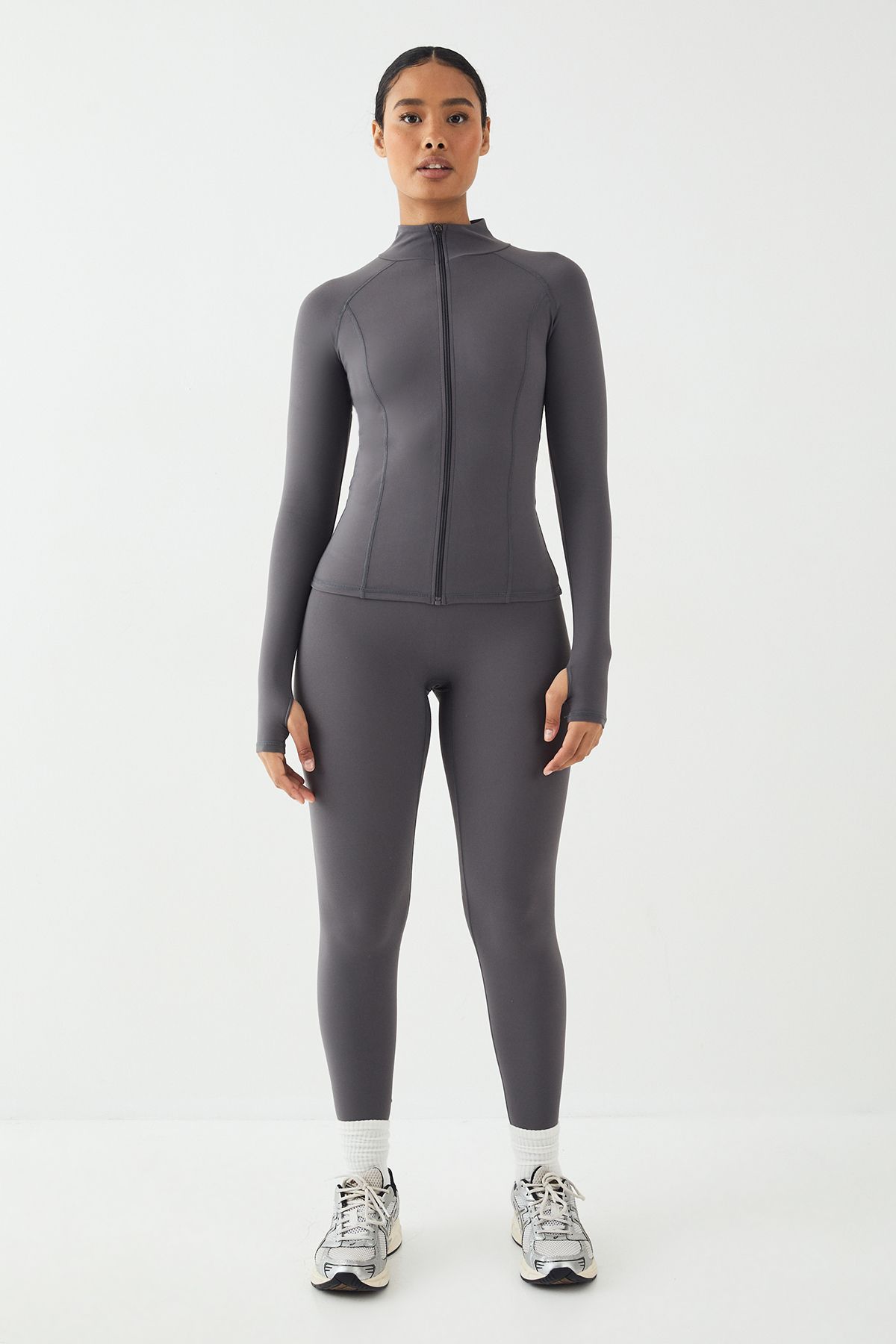 - This DSGN Studio zip jacket combines functionality with sleek style for your active lifestyle. The form-fitting design hugs your curves whilst allowing complete freedom of movement for everything from yoga to high-intensity training. Thoughtfully placed seams create a flattering silhouette that works as hard as you do. Pair with the matching leggings as shown for a coordinated workout ensemble, or style with your favourite sports bra and shorts for warmer sessions. Perfect for morning runs, gym sessions, or even as a layering piece for casual weekend outings. The versatile design transitions seamlessly from exercise to errands, making it an essential addition to your activewear collection. The super-soft fabric feels luxurious against the skin whilst providing the technical performance you need for your most challenging workouts.