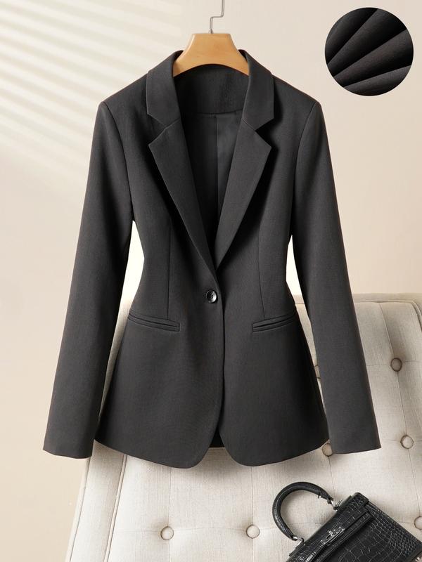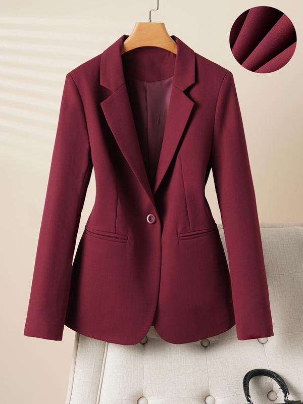 • Elegant Women's Blazer Jacket, Fitted Woven Fabric, Long Sleeve Plain Design, Perfect for Office & Spring Autumn Wear