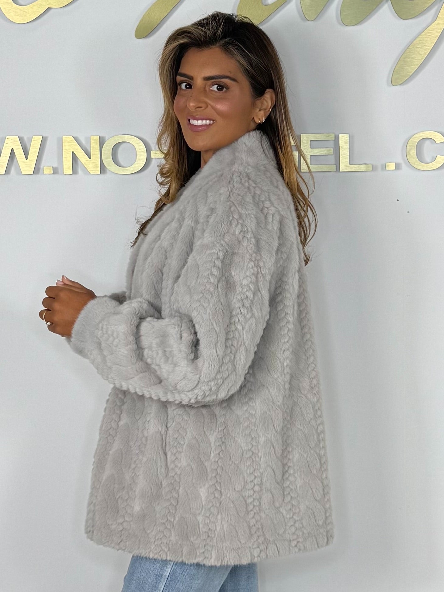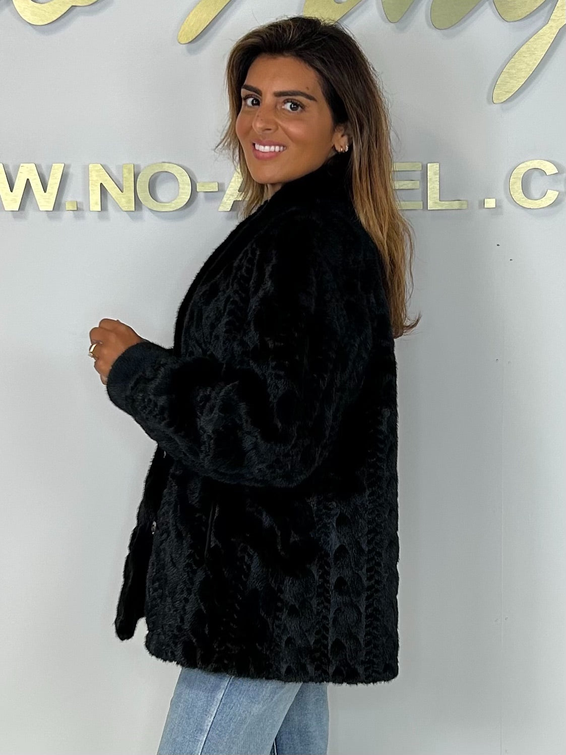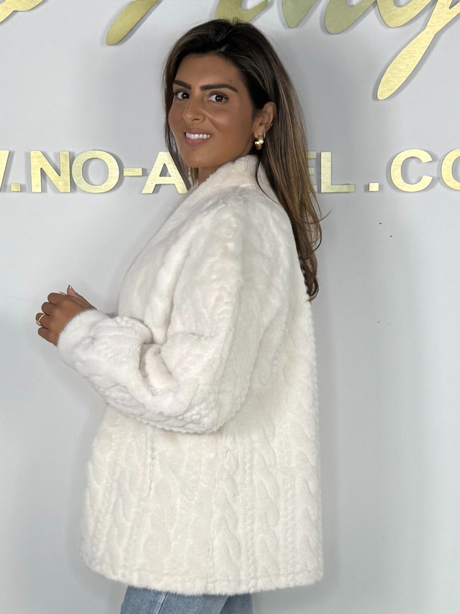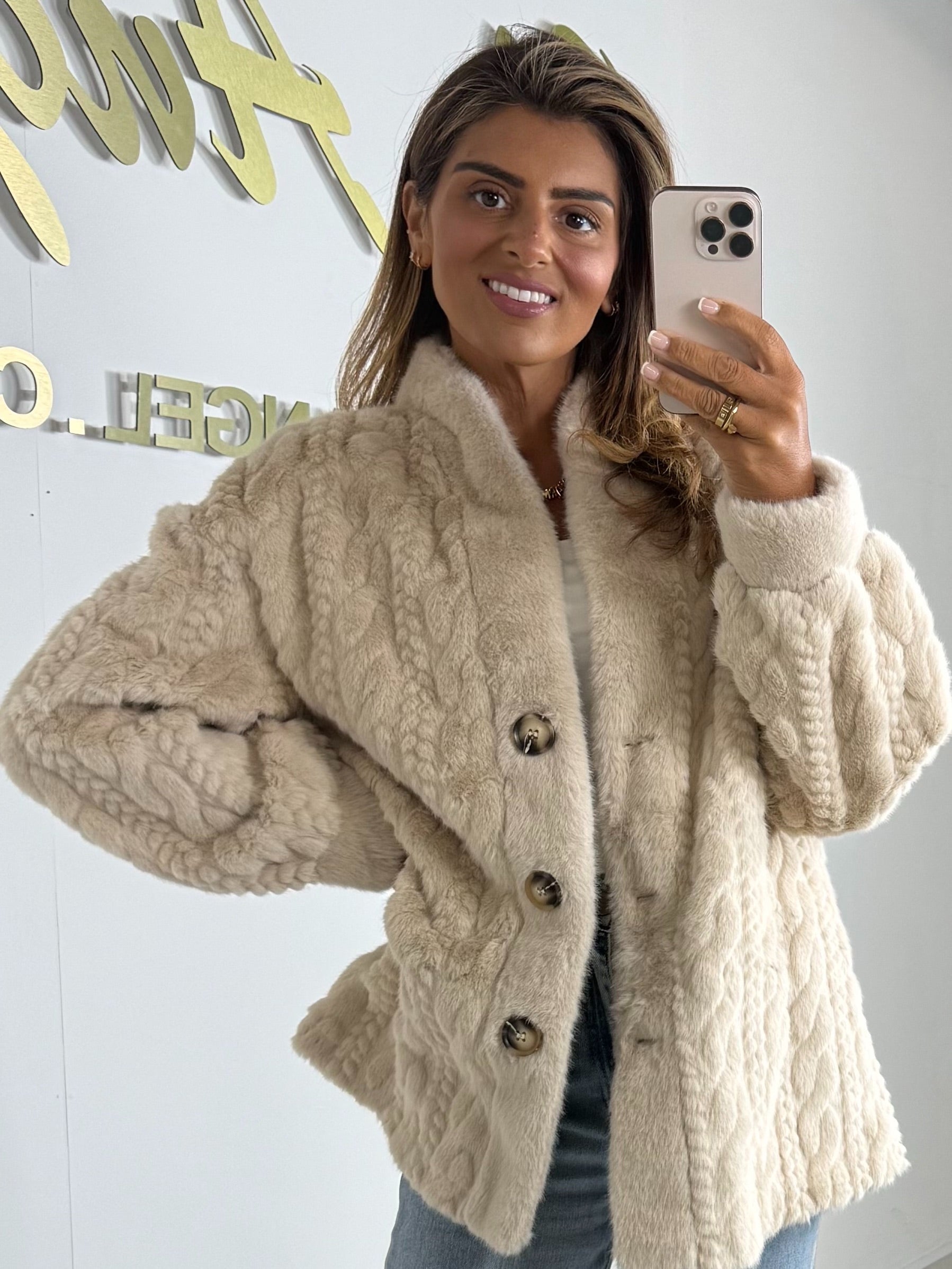 Faux Fur Cable Design Button Up Jacket
