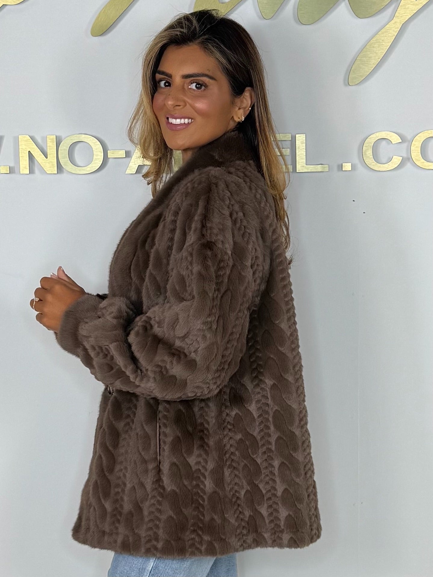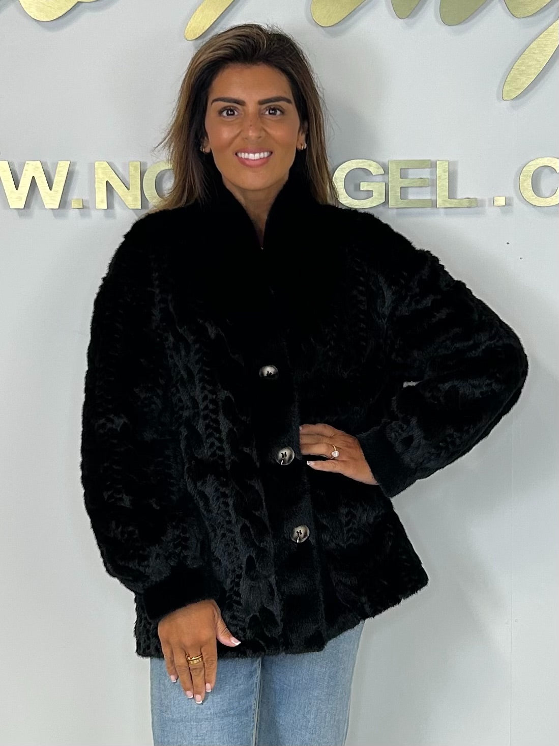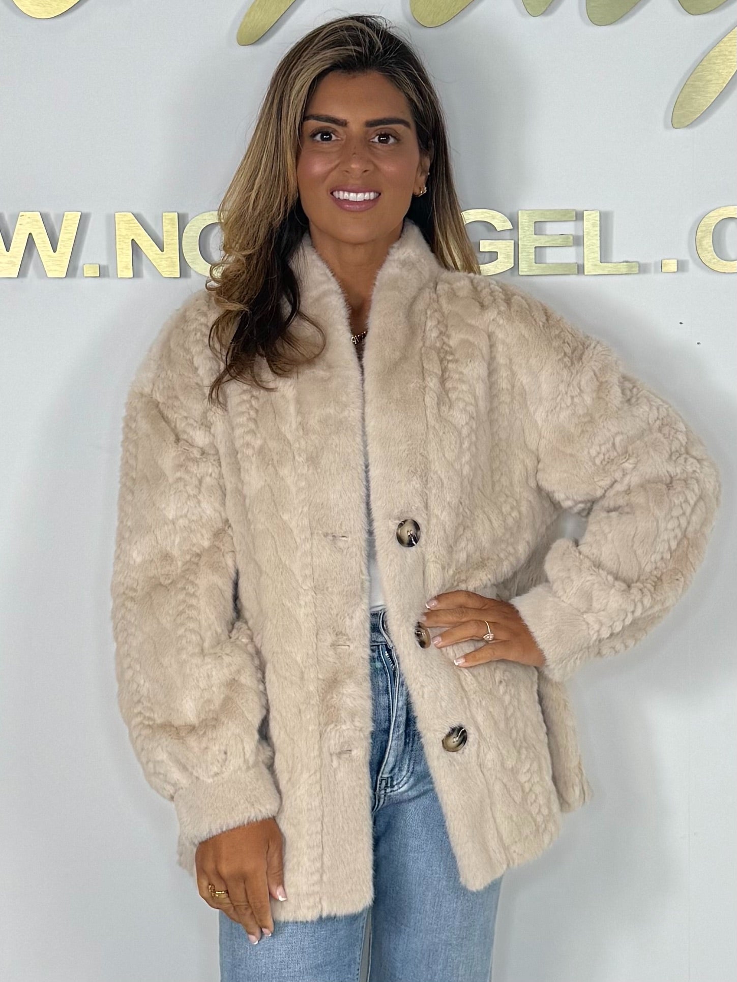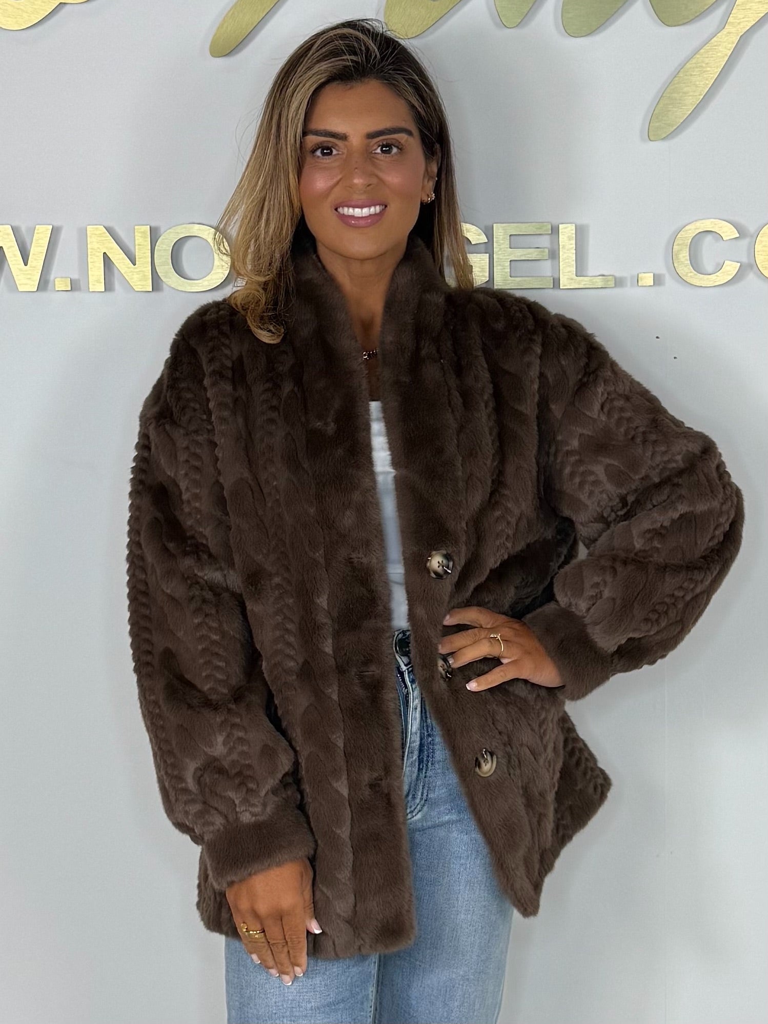 Faux Fur Cable Design Button Up Jacket