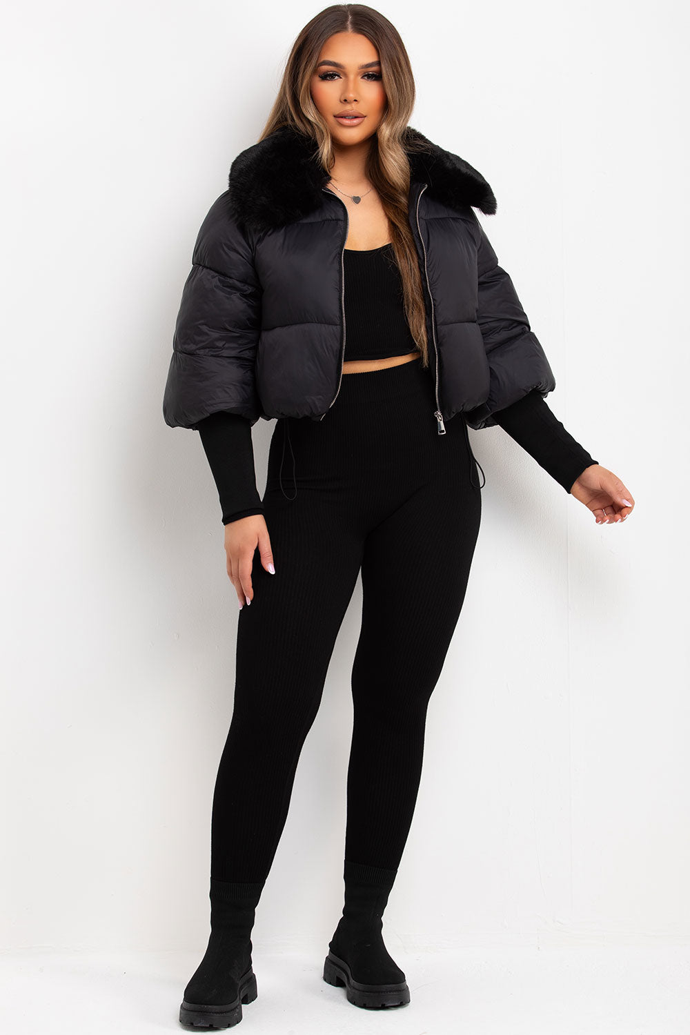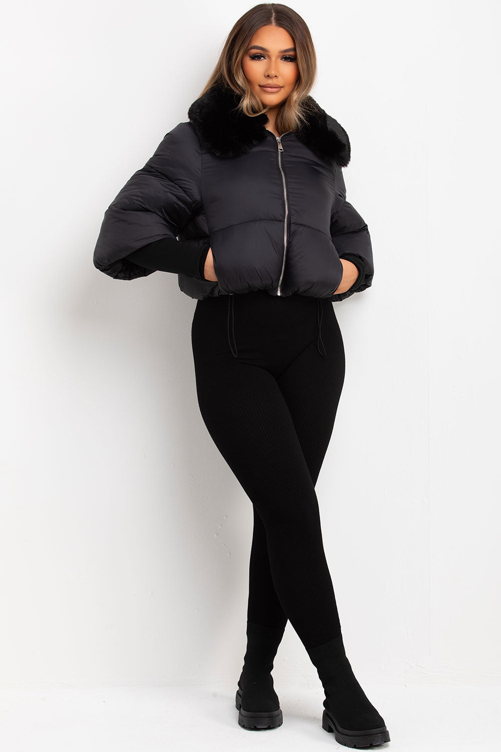 Faux fur collar puffer jacket. This fur collar puffer jacket is going to takle your style game to the next level. Featuring puffer jacket with zip fastening faux fur collar pockets adjustable elasticated hem and long ribbed cuff detail, windproof weather resistant and warm. Style this puffer jacket with any outfit to complete your outerwear look.