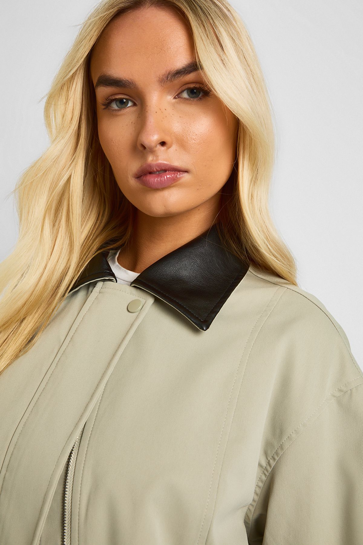 • This faux leather contrast collar jacket brings together urban edge and casual comfort for your everyday wardrobe. The distinctive collar detail creates a fashion-forward look that pairs brilliantly with wide-leg trousers and a simple crop top for daytime outings. The relaxed silhouette allows for effortless layering over jumpers when temperatures drop, while the cropped length works wonderfully with high-waisted jeans or trousers. Style with trainers and your favourite crossbody bag for weekend brunches, or dress it up with ankle boots and statement jewellery for evening drinks with friends. This versatile piece transitions seamlessly from family gatherings to casual coffee dates, making it an essential addition to your autumn-winter collection. A true Boohoo staple that combines practicality with on-trend design.