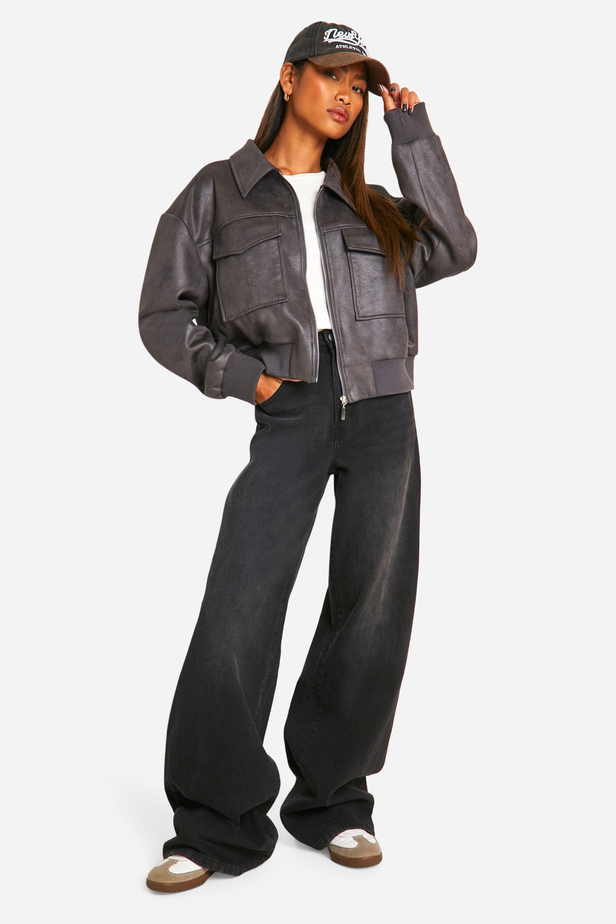 - Ribbed cuffs and hem for a snug fit Embrace casual chic with this faux suede bomber jacket from Boohoo. The oversized silhouette offers a contemporary twist on a classic style, perfect for the fashion-forward woman who values both comfort and trend-setting looks. Style it with wide-leg trousers and trainers for an effortlessly cool daytime ensemble, or throw it over a mini dress and ankle boots for a night out with friends. The versatile design makes it ideal for various casual occasions, from weekend brunches to family gatherings. For a sporty edge, pair it with a baseball cap and your favourite jeans. The soft-touch fabric and roomy fit ensure you'll stay comfortable while turning heads. This bomber jacket is a must-have piece that will quickly become a go-to in your wardrobe, offering endless styling possibilities for the modern, style-conscious woman.