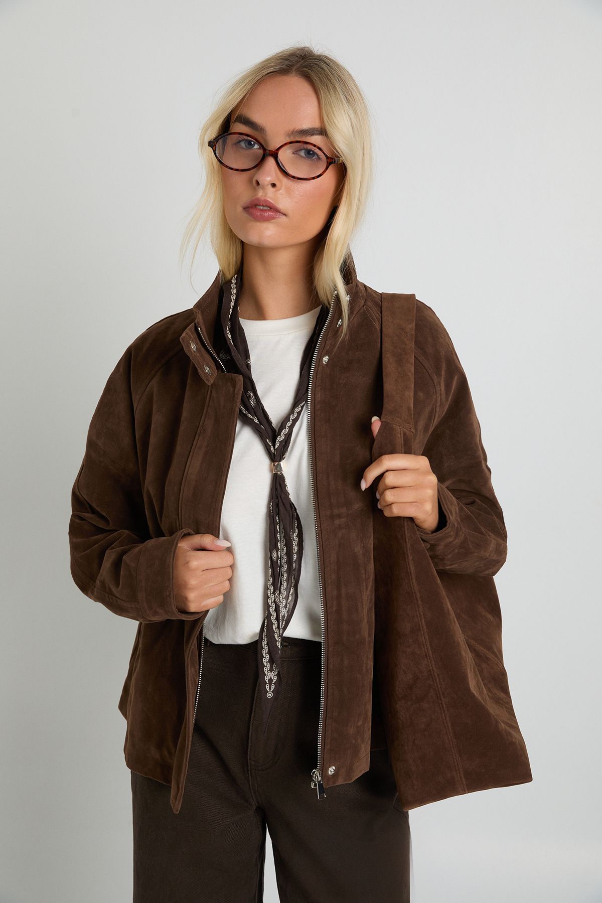 • Luxurious faux suede bomber jacket with a soft-touch finish