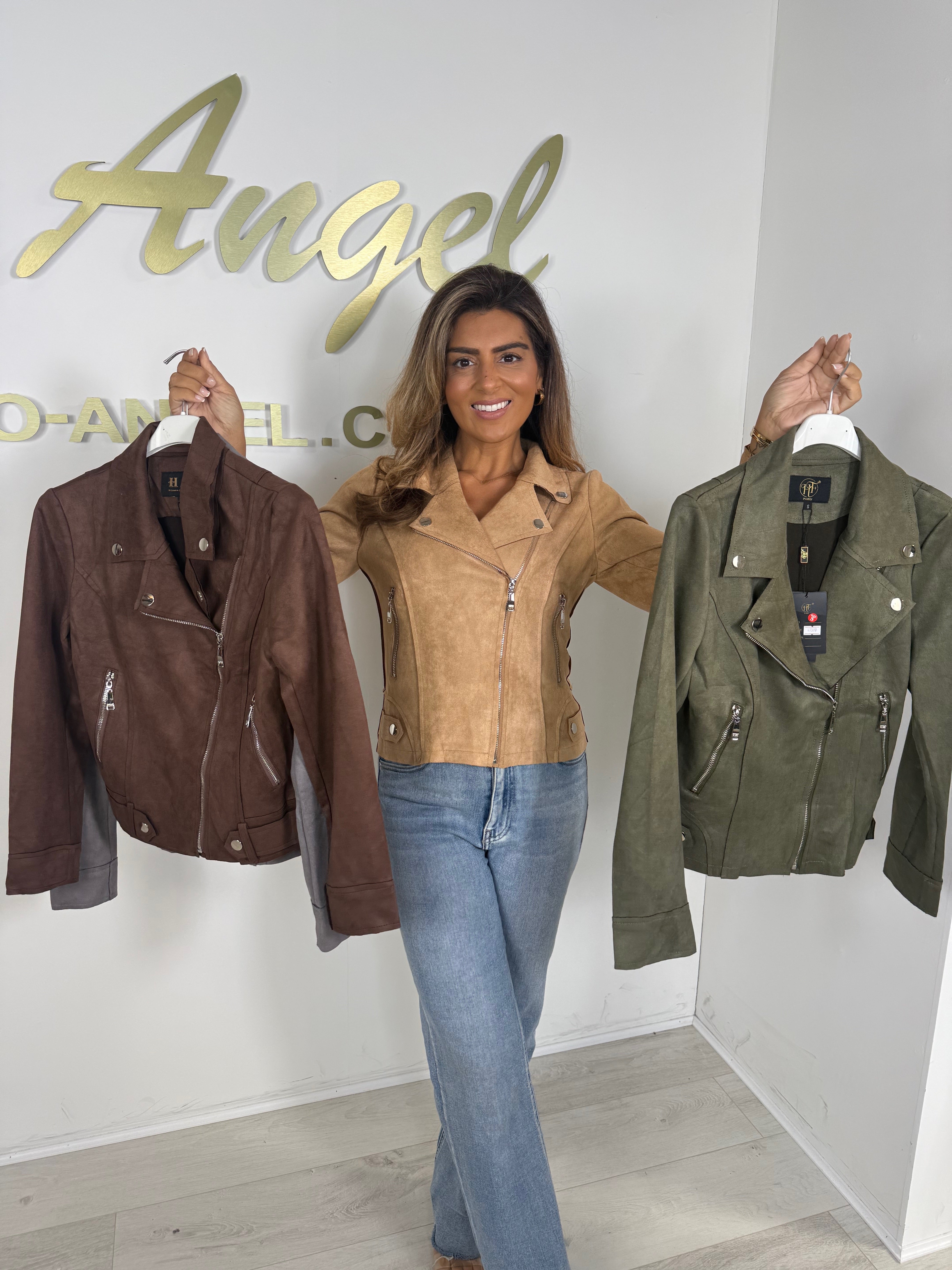Faux Suede Military Zip Up Biker Jacket