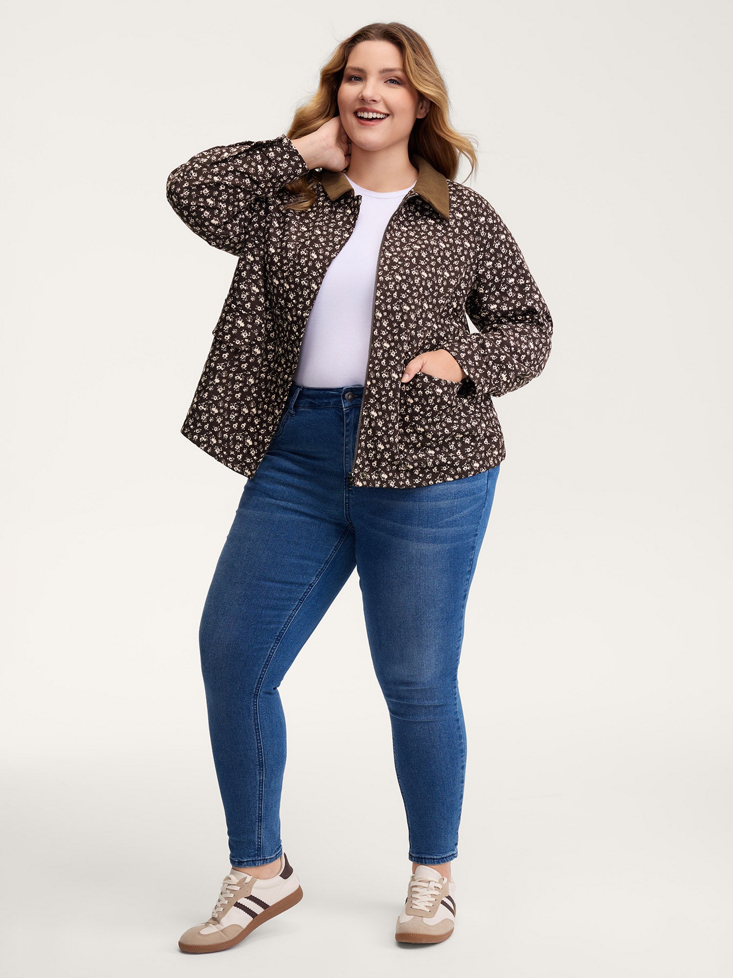 Floral Print Contrast Collar Jacket