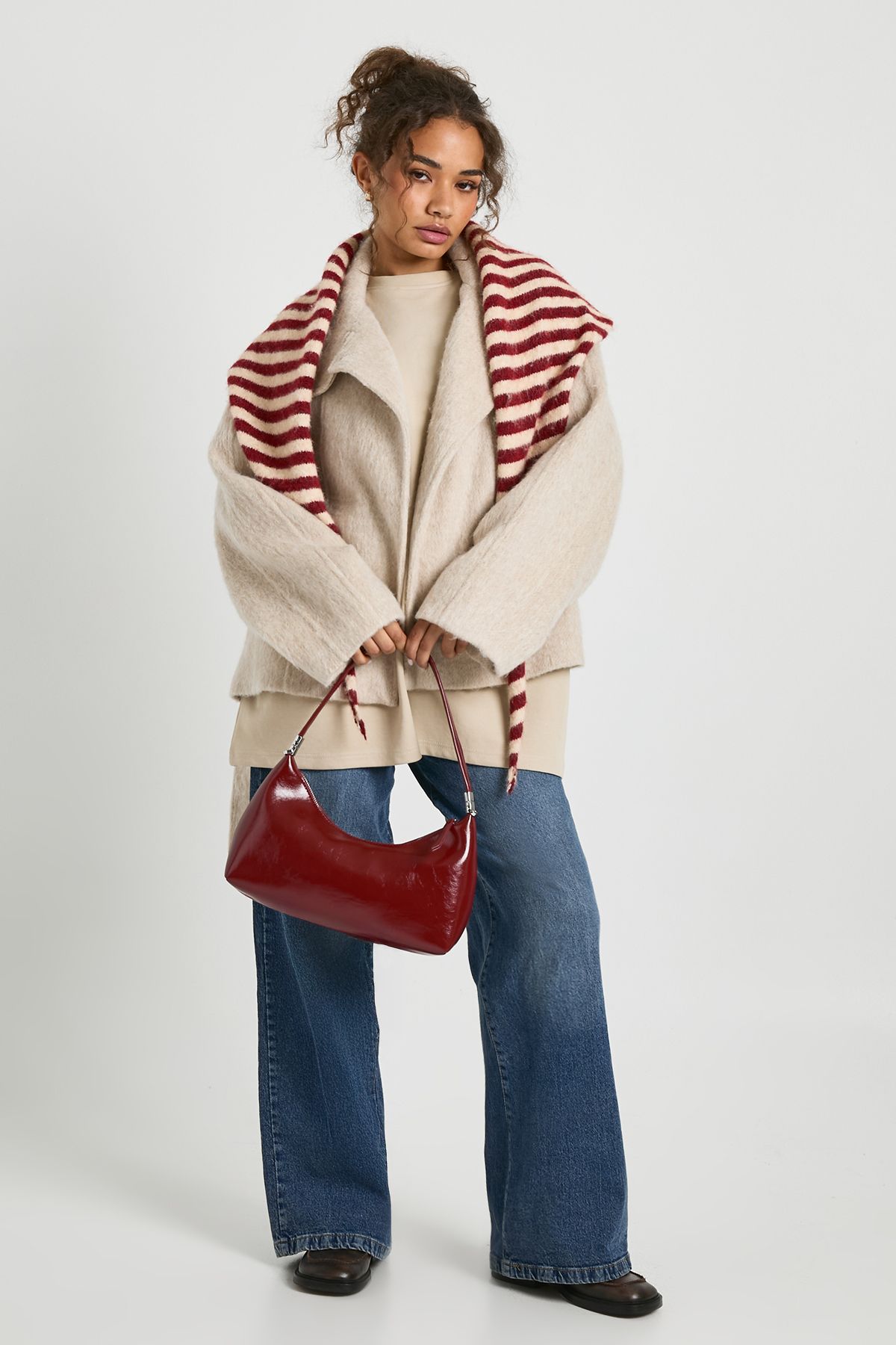 - Textured fabric adds dimension and interest to your casual outfits This belted jacket combines comfort with contemporary style, making it the perfect addition to your casual wardrobe. The relaxed silhouette and generous proportions create a cosy yet chic look that works brilliantly for everyday wear. Style with slim-fitting trousers or leggings to balance the oversized shape, as shown in our styling. For family gatherings or weekend brunches, layer over a simple knit and pair with your favourite jeans and flat shoes for an effortlessly put-together appearance. The versatile design allows for multiple styling options-wear open for a relaxed feel or belted to define your waist. This jacket transitions seamlessly from autumn to winter, making it a practical choice for the British climate. The neutral tone ensures it will complement existing pieces in your wardrobe, while the textured finish adds a touch of sophistication to casual ensembles.