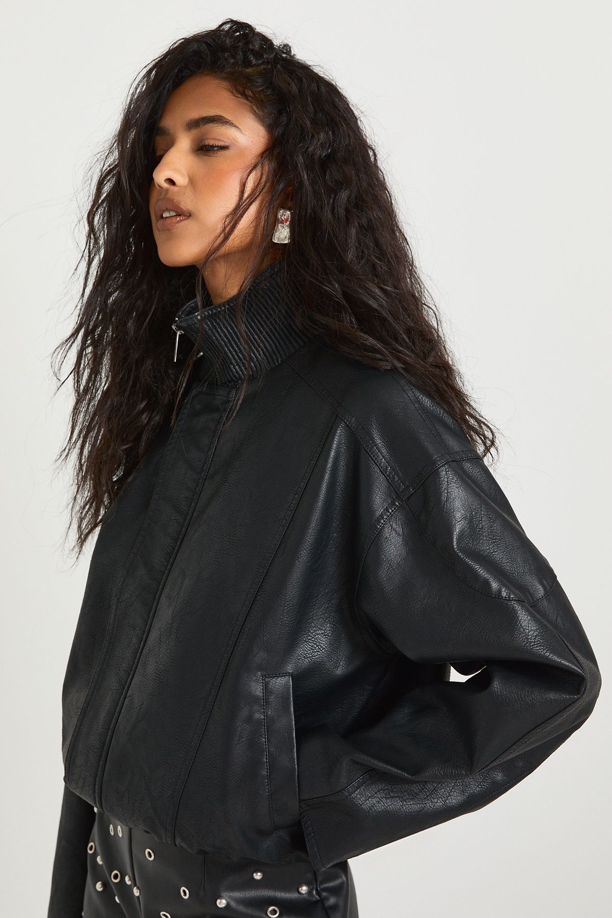 • Oversized fit with dropped shoulders for effortless layering Make a bold statement with this funnel neck bomber jacket that combines retro athletic style with modern attitude. The relaxed silhouette creates a fashionable oversized look that's perfect for layering over everything from casual basics to evening attire. Style with cycling shorts and chunky trainers for daytime cool, or throw over a slip dress with heeled mules for evening drinks with the girls. The elasticated hem creates a flattering silhouette while the funnel neck adds a contemporary twist to this classic style. Perfect for unpredictable British weather, this versatile piece works brilliantly for family gatherings, weekend brunches or casual Friday office wear. For a complete look, pair with your favourite Boohoo midi skirt and boots, or keep it casual with straight-leg jeans and trainers for an effortlessly cool vibe.
