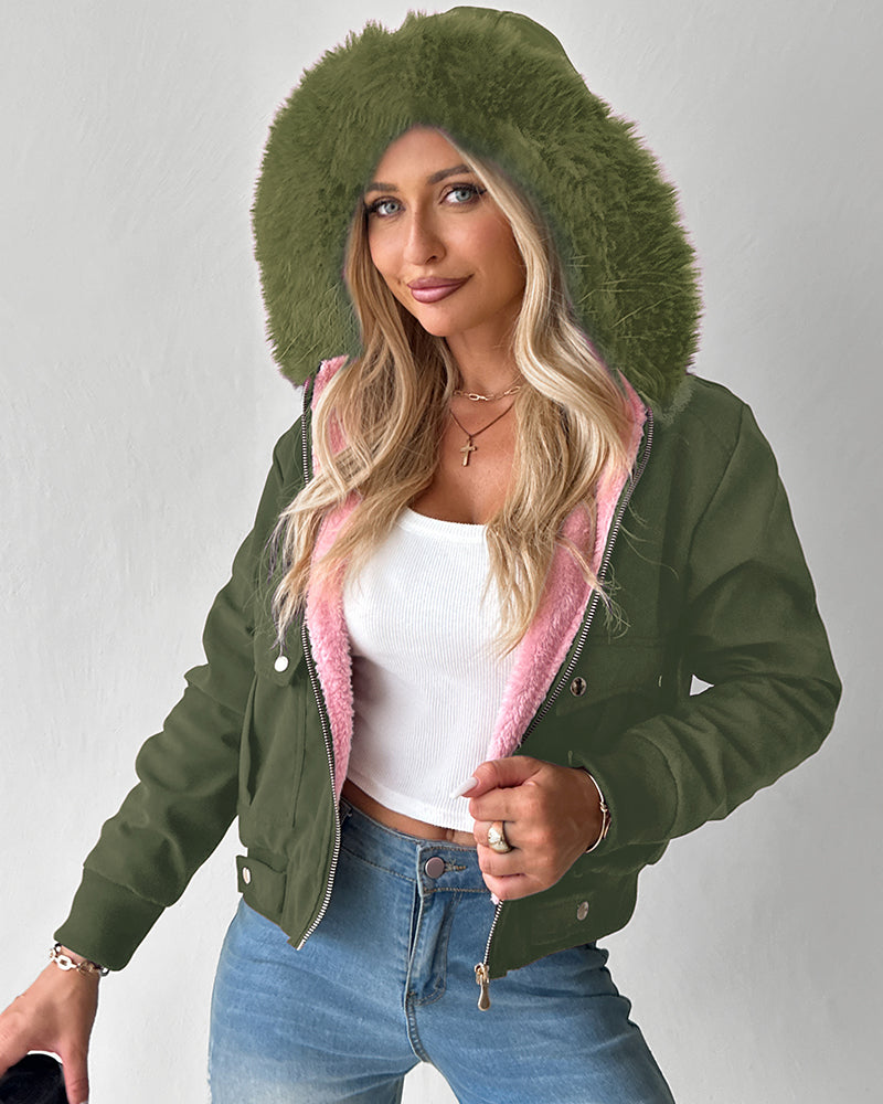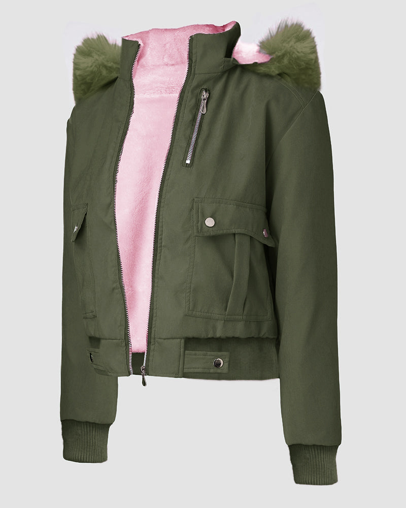- Detachable Fluffy Trim Hood: The hood is accented with plush, fluffyy trim for extra warmth and a chic finish.