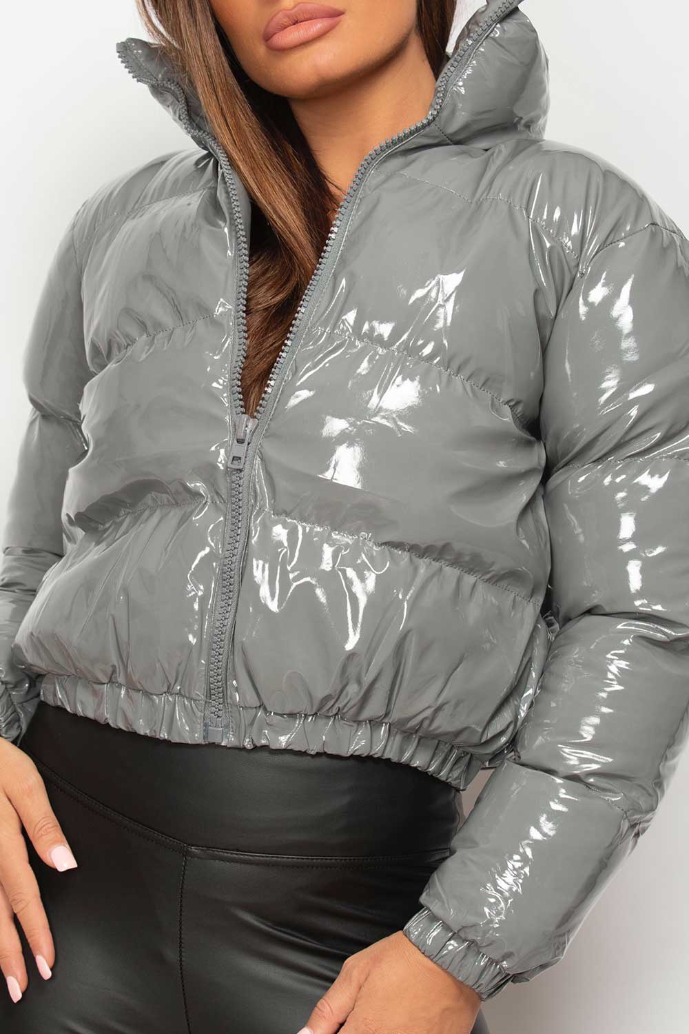 This shiny puffer jacket is the one, everyone wants right now. Featuring high shine vinyl fabric, puffer style, zip fastening, high collar and short length. Style this shiny puffer jacket with crop and high waist to steel all the stares. Available in , , .