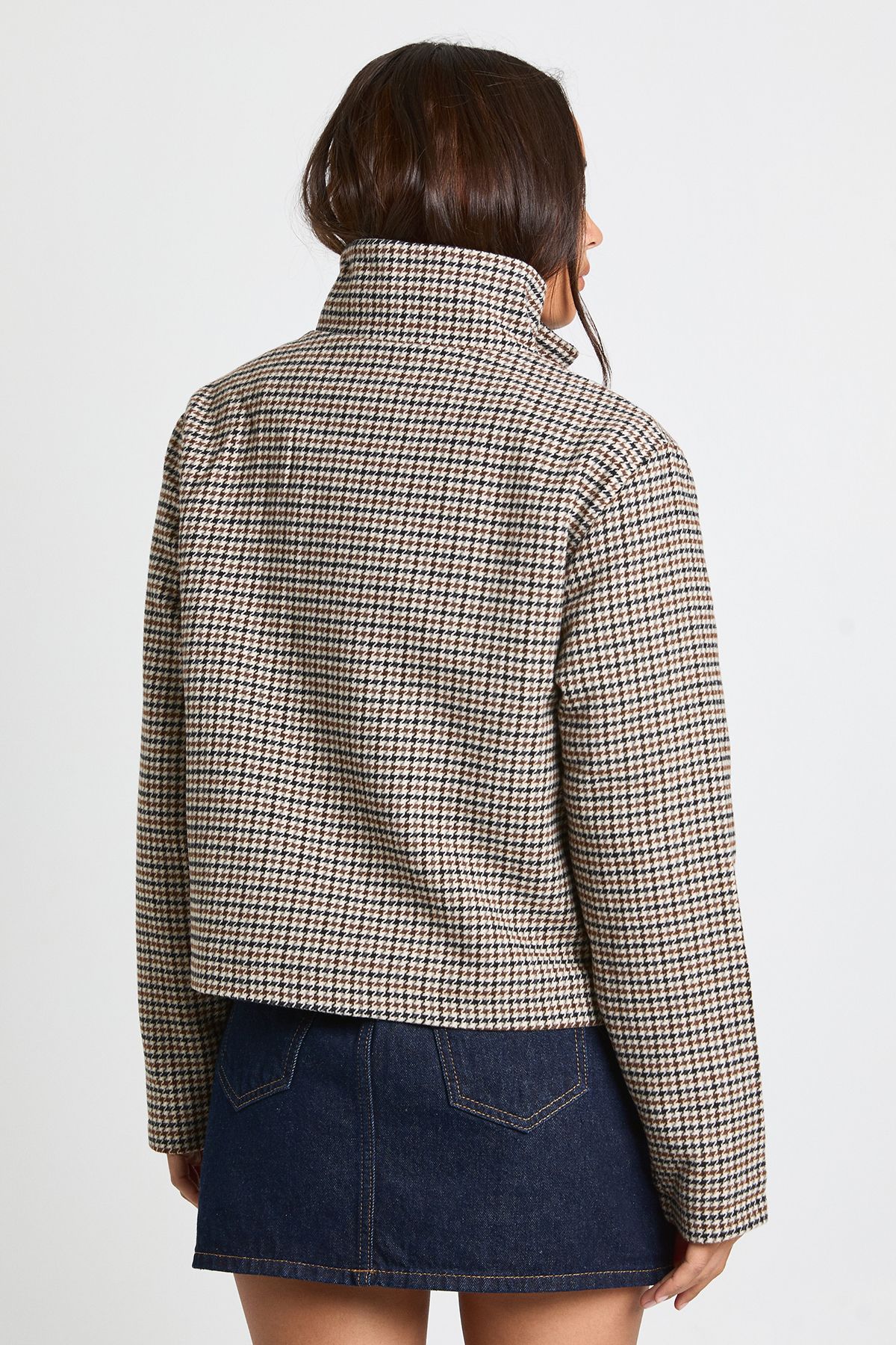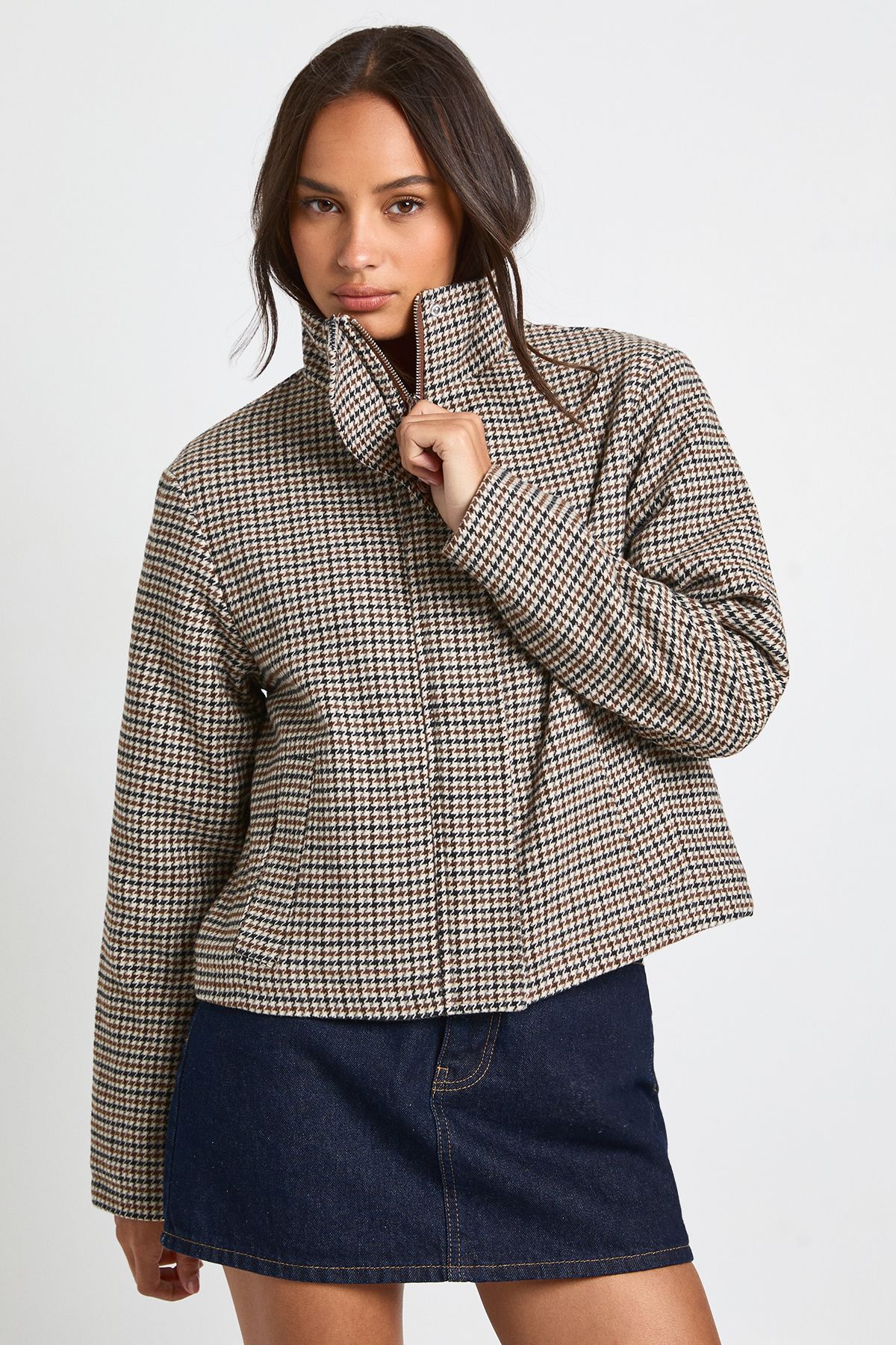 Herringbone Funnel Neck Wool Look Jacket