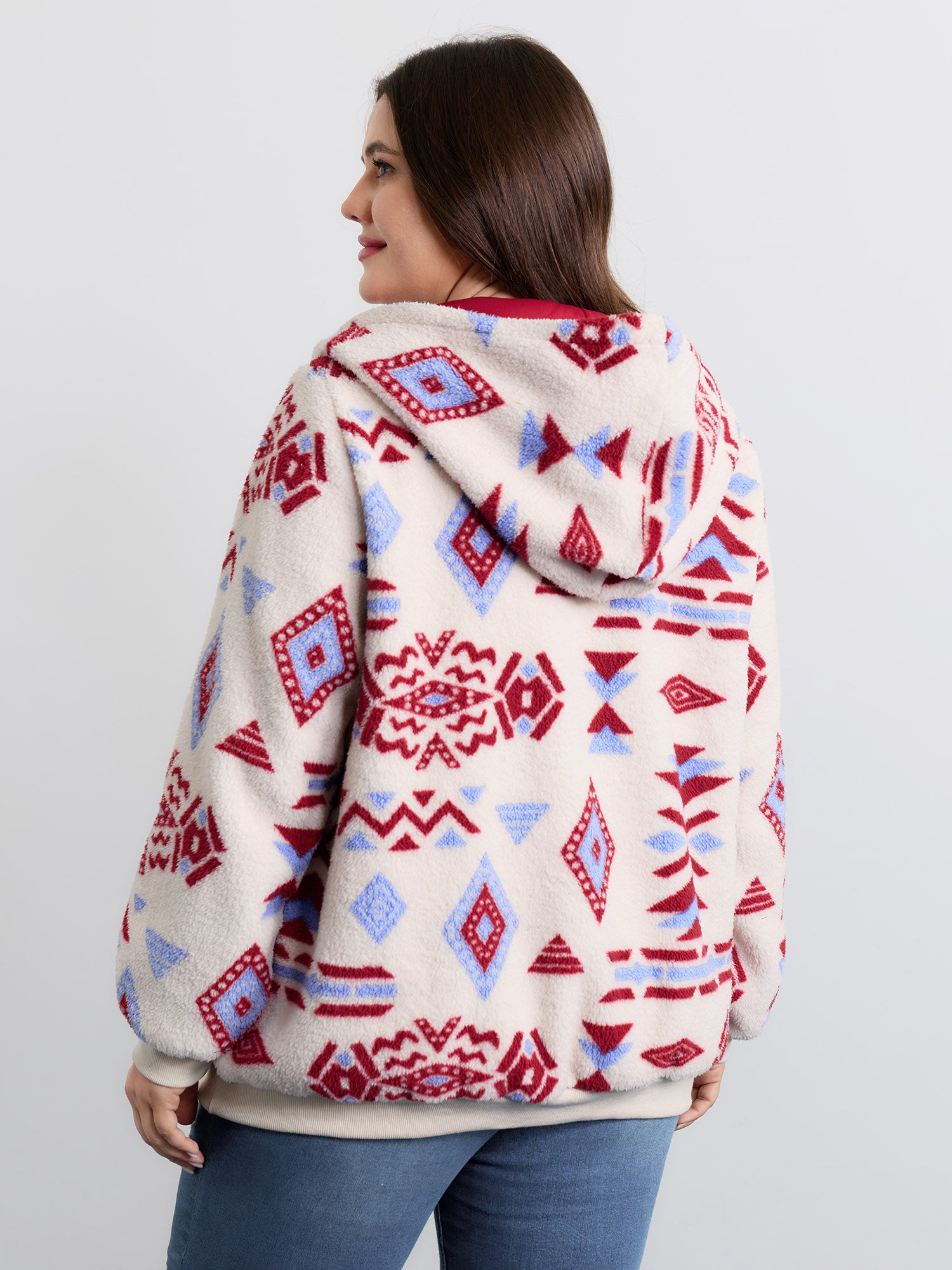 Shop Holiday Pattern Zipper Contrast Jacket now and redefine your style with confidence at BloomChic. Tailored for mid and plus-size women. This trendy Outerwear Women, sizes 10-30. Color:Ivory;Pattern Type:Christmas;Prints:Non;Details:Contrast;Pocket:Patch pocket;Belt:No-belt;Closure Type:Zipper;Lining:Lining