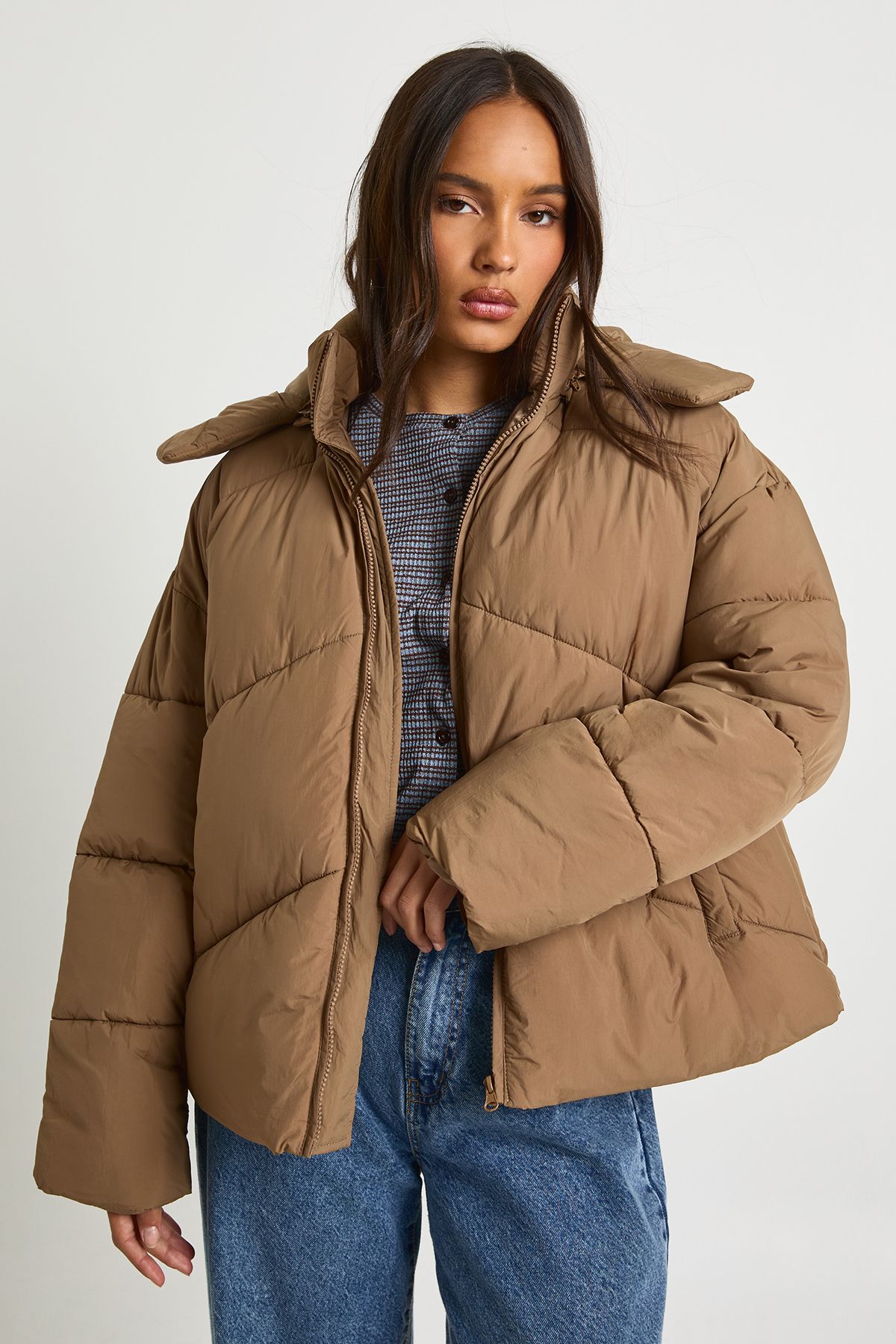 Wrap up in the latest coats and jackets and get out-there with your outerwearBreathe life into your new season layering with the latest coats and jackets from boohoo. Supersize your silhouette in a padded jacket, stick to sporty styling with a bomber, or protect yourself from the elements in a plastic raincoat. For a more luxe layering piece, faux fur coats come in fondant shades and longline duster coats give your look an androgynous edge.