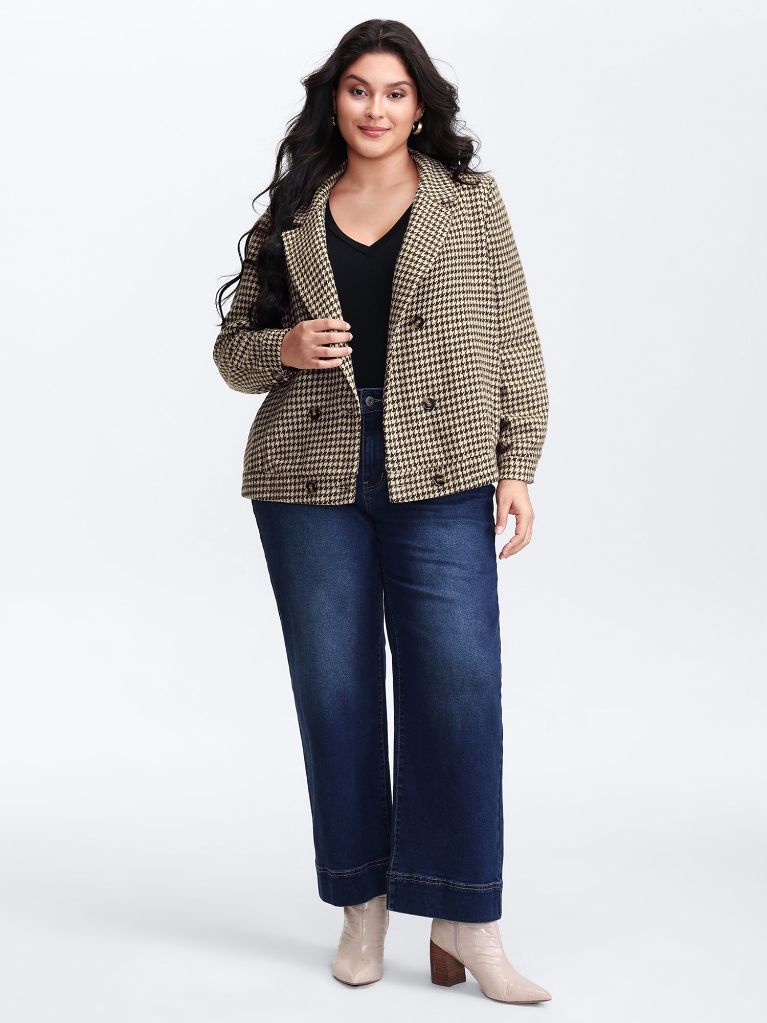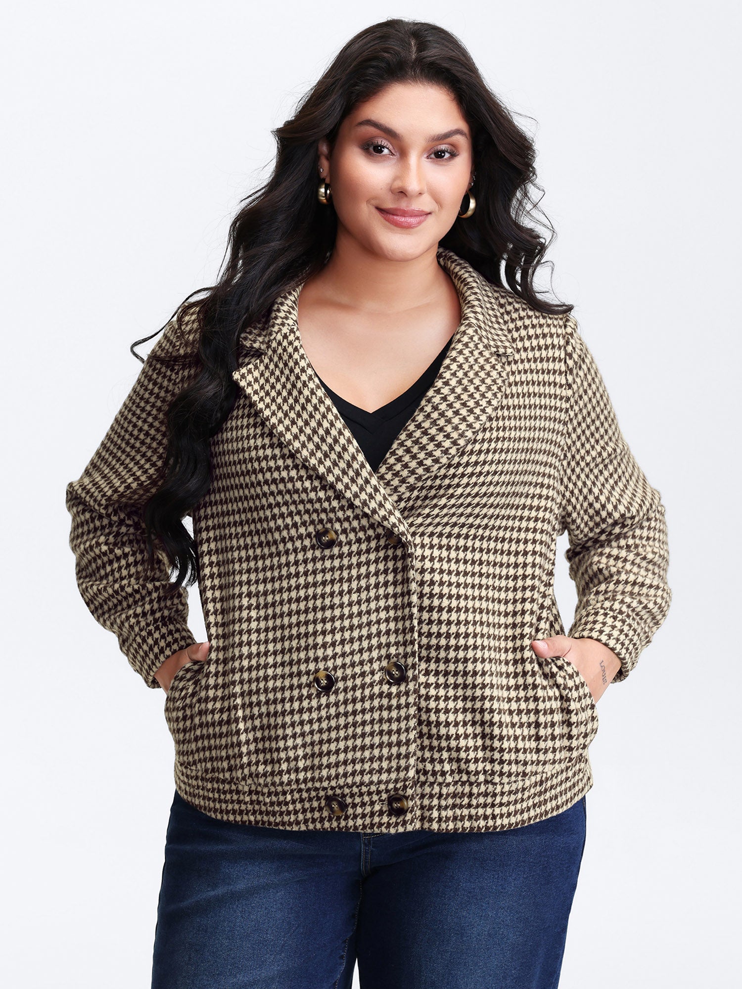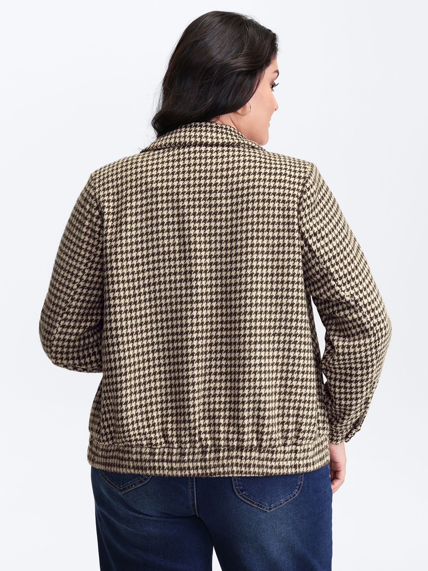 Houndstooth Fleece Pockets Button Jacket