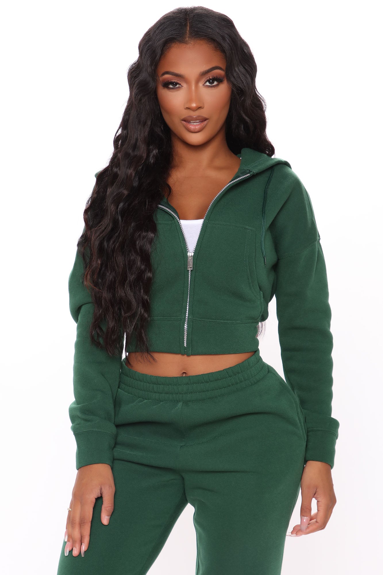 Available In Black, Burgundy, Hunter, Mocha And Off White.2 Piece Ensemble LoungeCropped Drawstring HoodieDouble Front PocketsElastic Waistband Joggers100% PolyesterImported