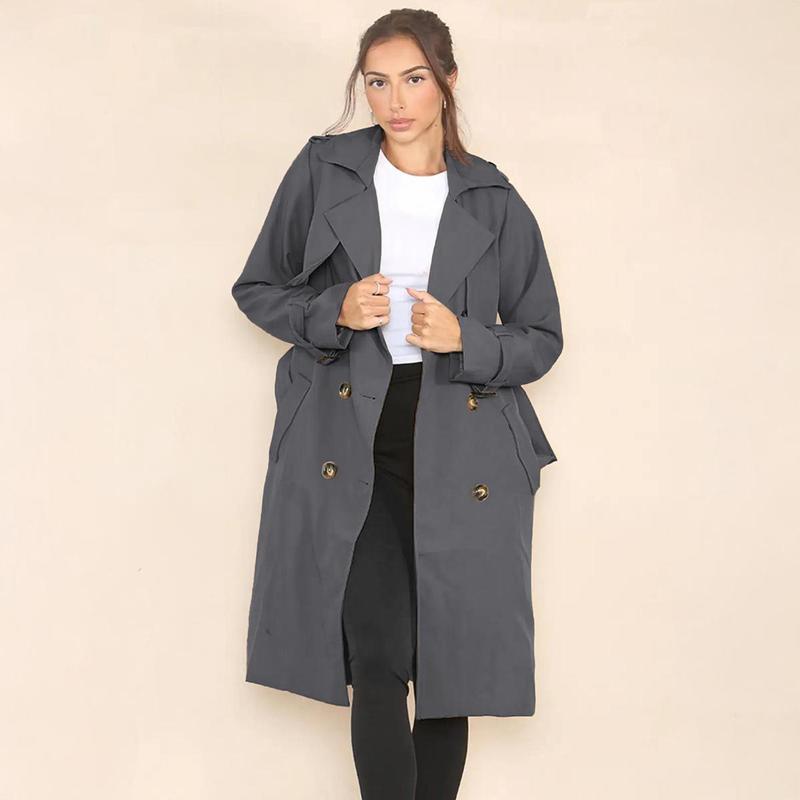 KatchMe Women's Versatile Solid Color Notch Lapel Double Breasted Detachable Belt Trench Coat, Fall & Winter Wrap Tie Waist Outerwear Jacket, Mid-Length Trench Coat