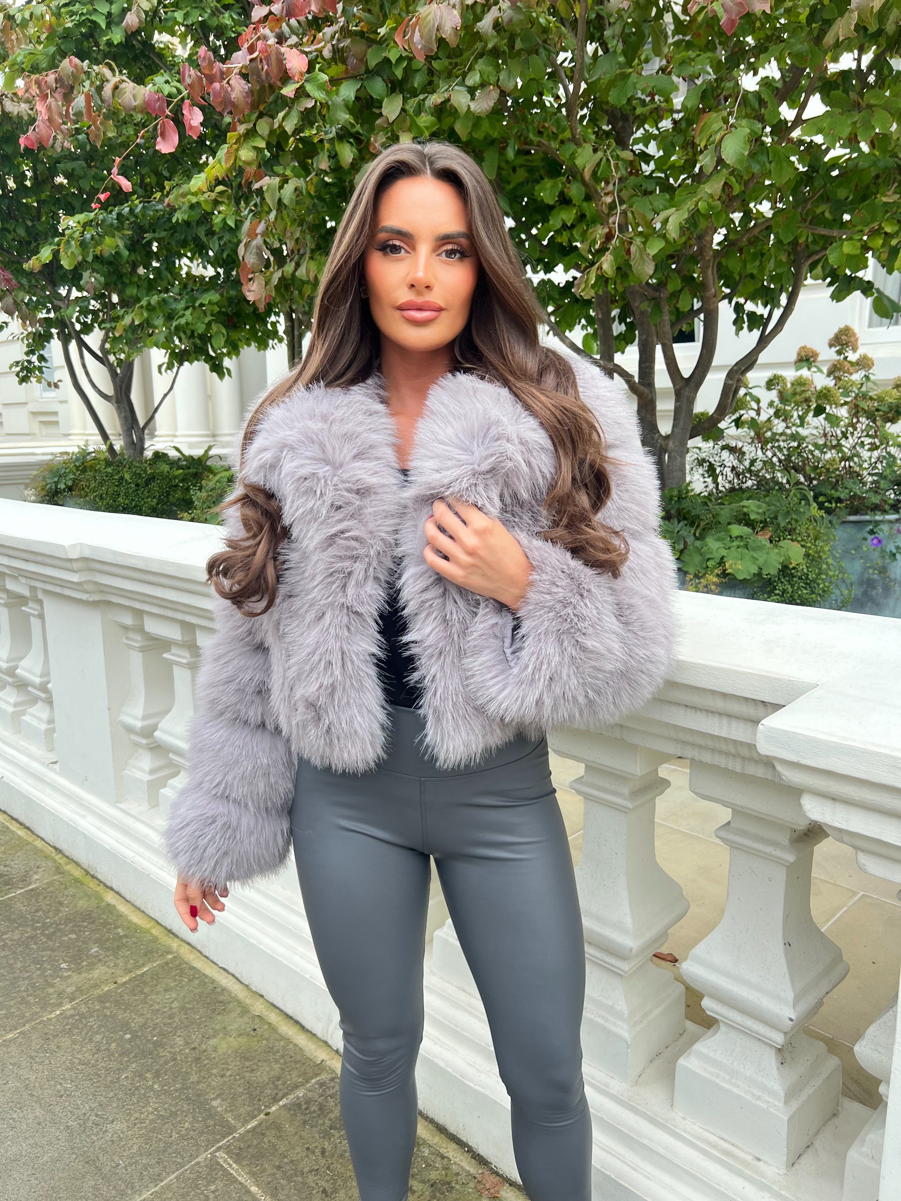 Expertly crafted with soft, faux fur, this jacket features a vertical design that flatters any figure. The collared neckline adds a touch of sophistication while the long sleeves provide warmth and style. With a convenient hook and eye fastening, this jacket is the perfect addition to any winter wardrobe.