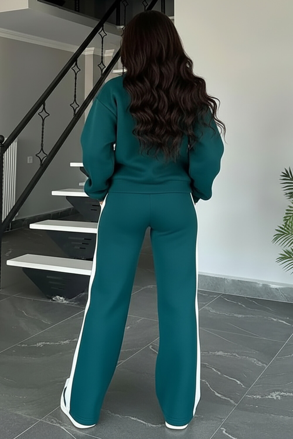 Long Sleeve Track Jacket Colorblock Striped Pants 2pcs Set-Teal [Pre Order]